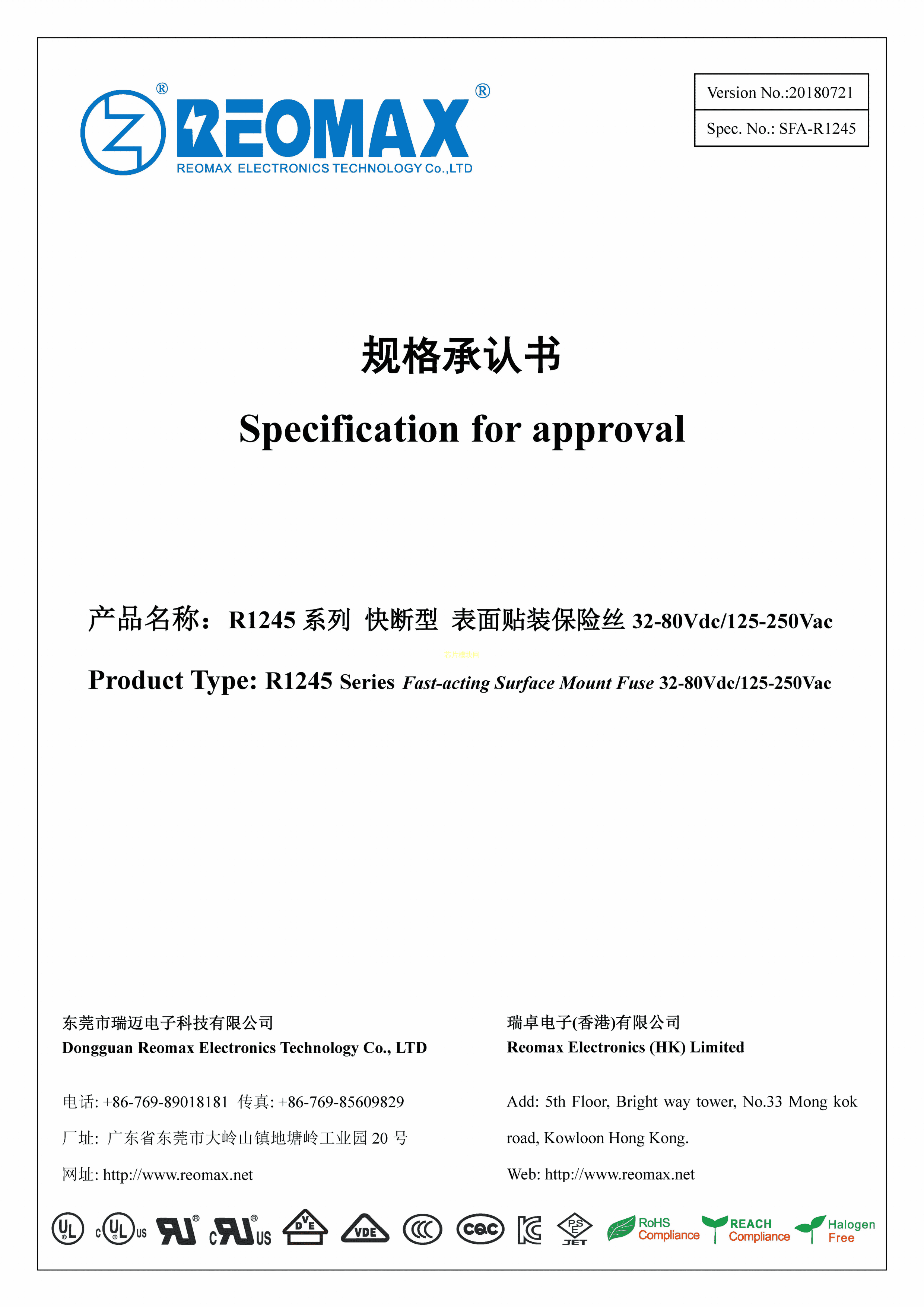 R1245.60数据手册SMD封装Reomax(瑞迈)PDF规格书,中英文下载
