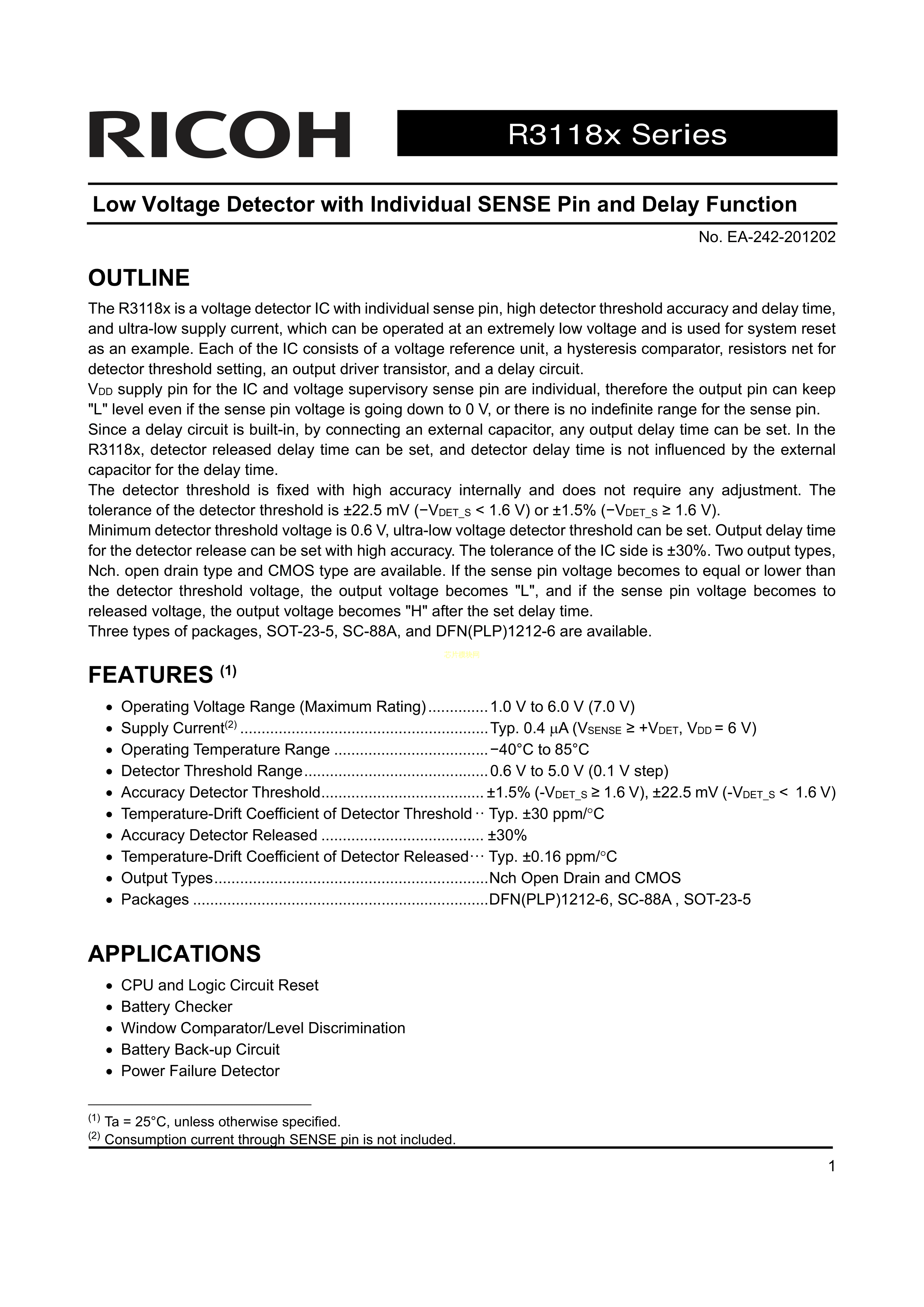 R3118K501A-TR数据手册DFN(PLP)1212-6封装RICOH(理光)PDF规格书,中