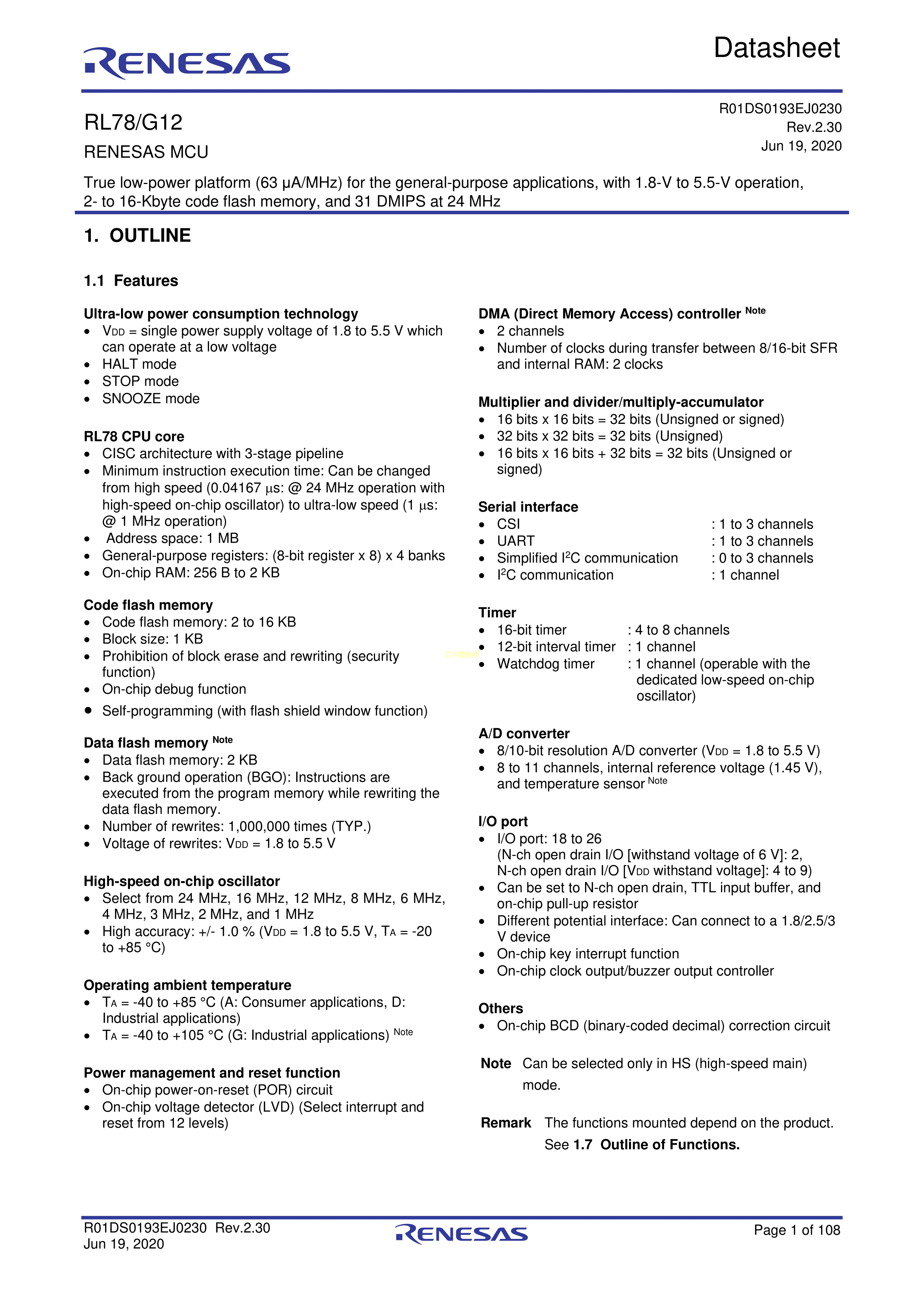 R5F102A8GSP#50数据手册LSSOP-30封装RENESAS(瑞萨)-IDTPDF规格书,