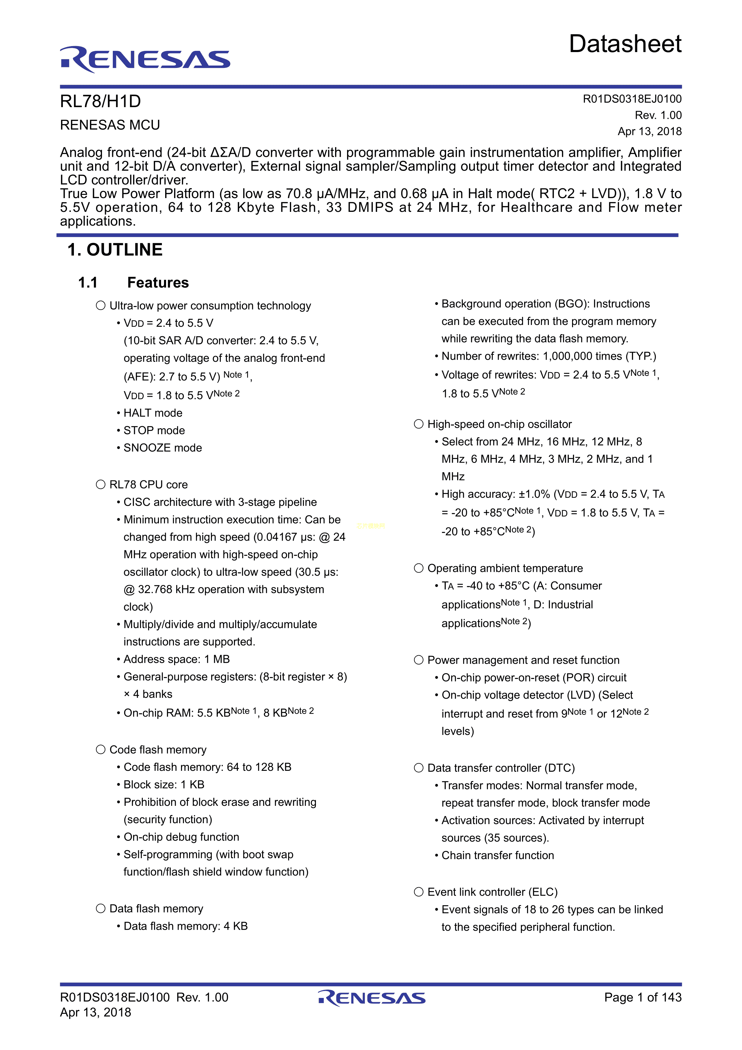 R5F11PLGABG#W0数据手册TFBGA-64(4x4)封装RENESAS(瑞萨)-IDTPD