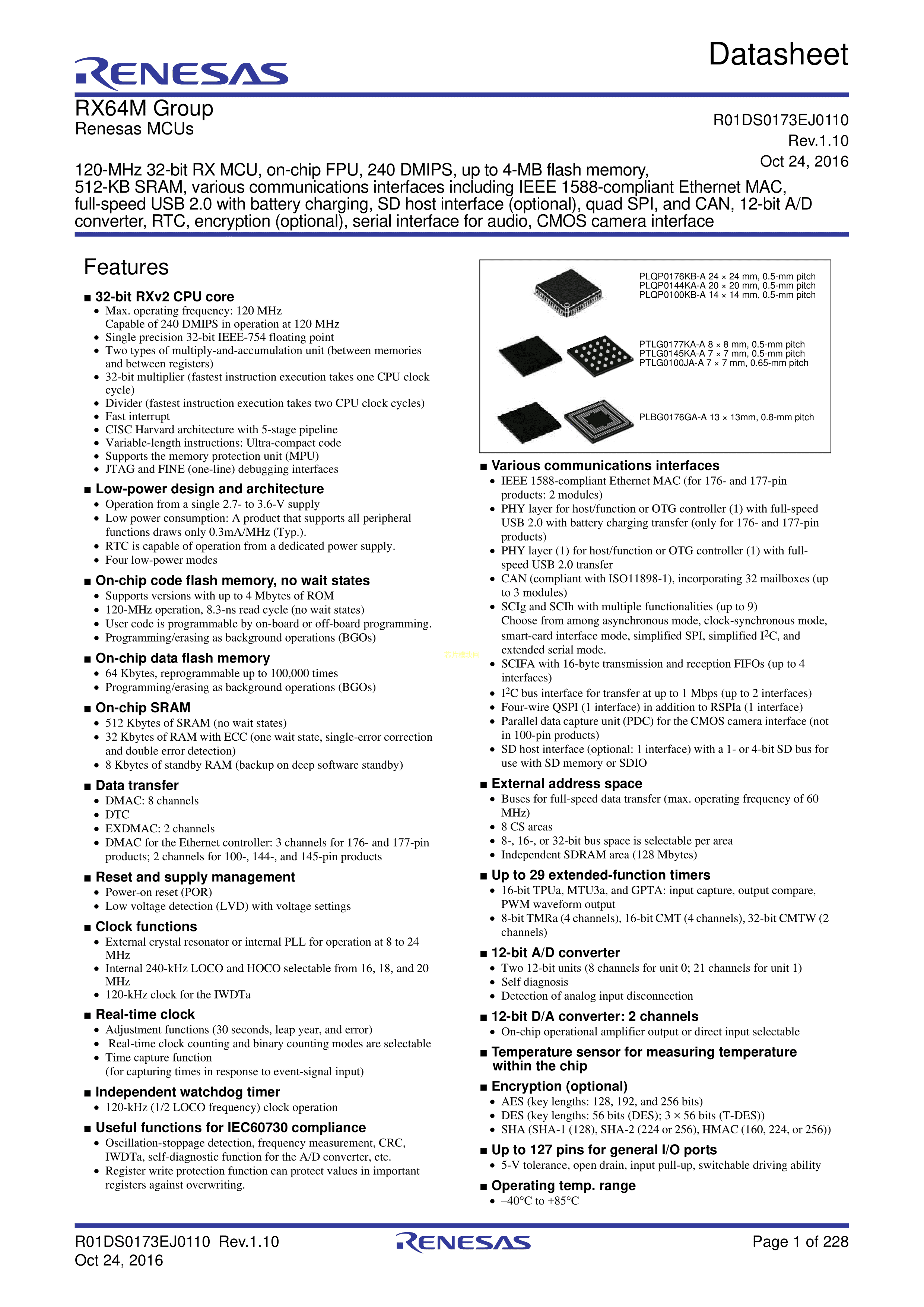 R5F564MFDDBG#21数据手册LFBGA-176(13x13)封装RENESAS(瑞萨)-I