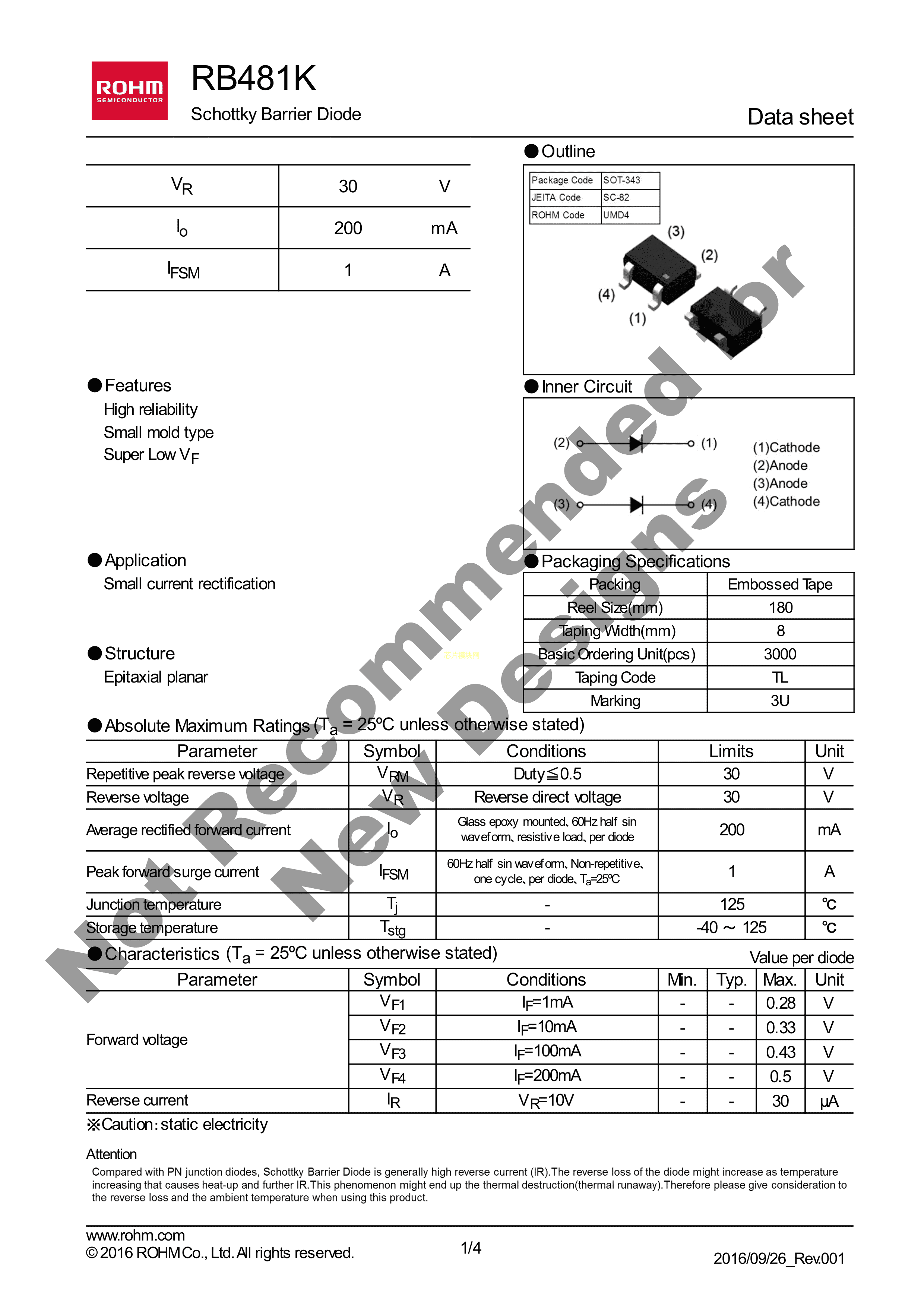 RB481KTL数据手册SC-82封装ROHM(罗姆)PDF规格书,中英文下载
