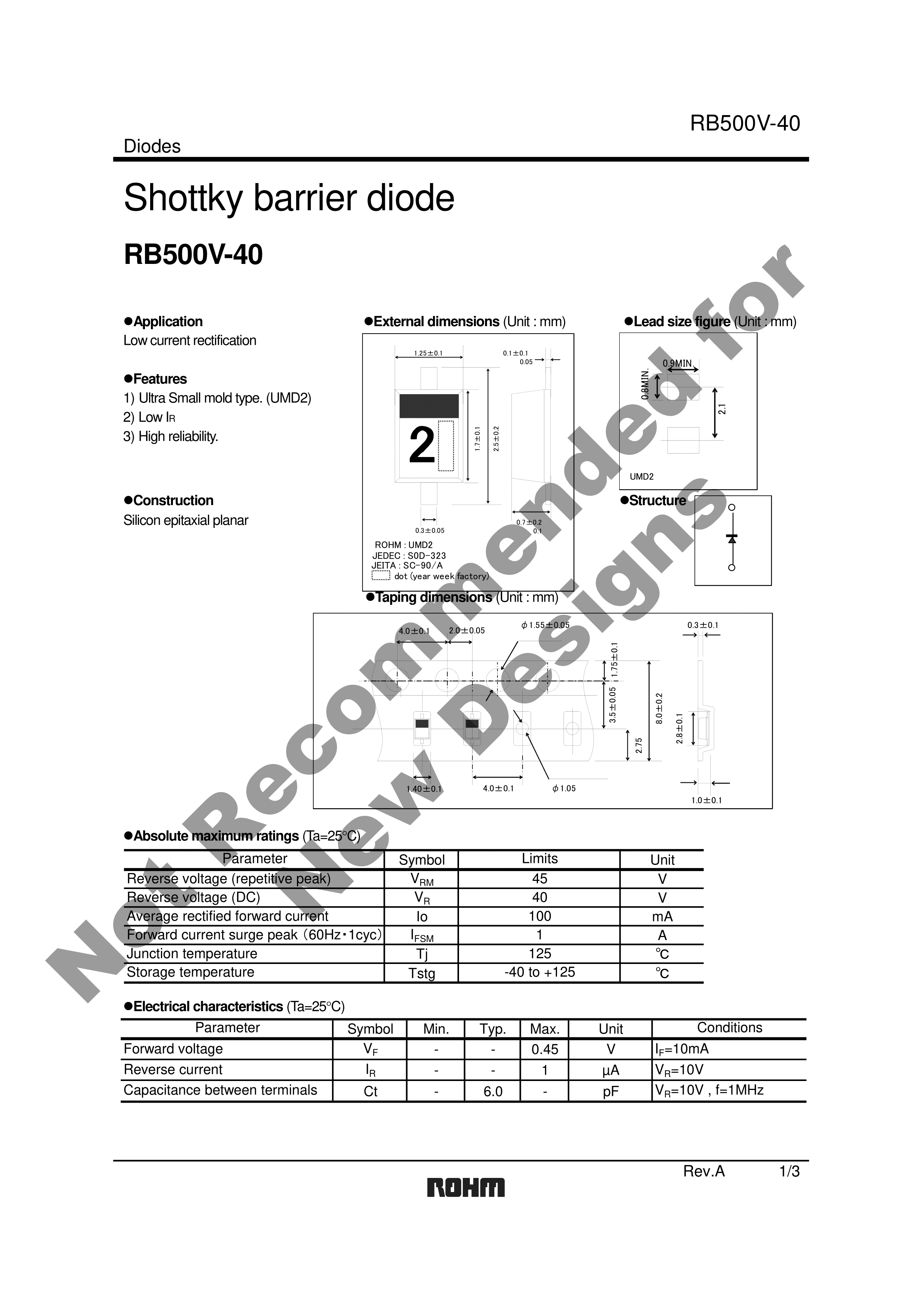 RB500V-40TE-17数据手册SOD-323封装ROHM(罗姆)PDF规格书,中英文下载