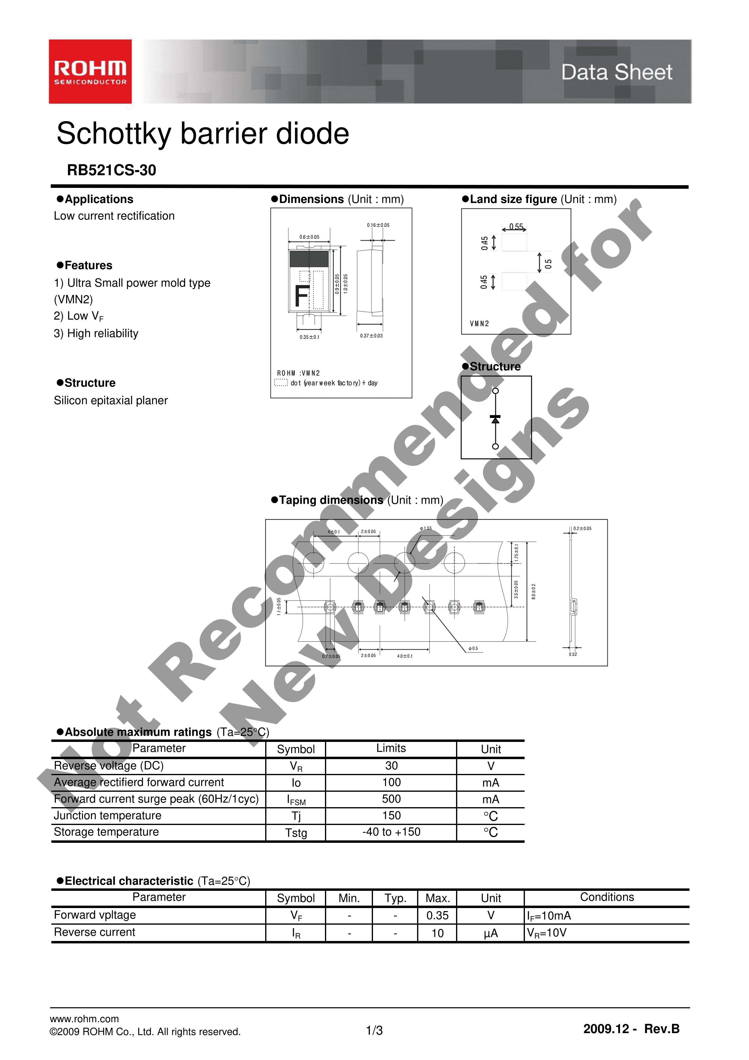 RB521CS-30T2R数据手册VMN-2封装ROHM(罗姆)PDF规格书,中英文下载