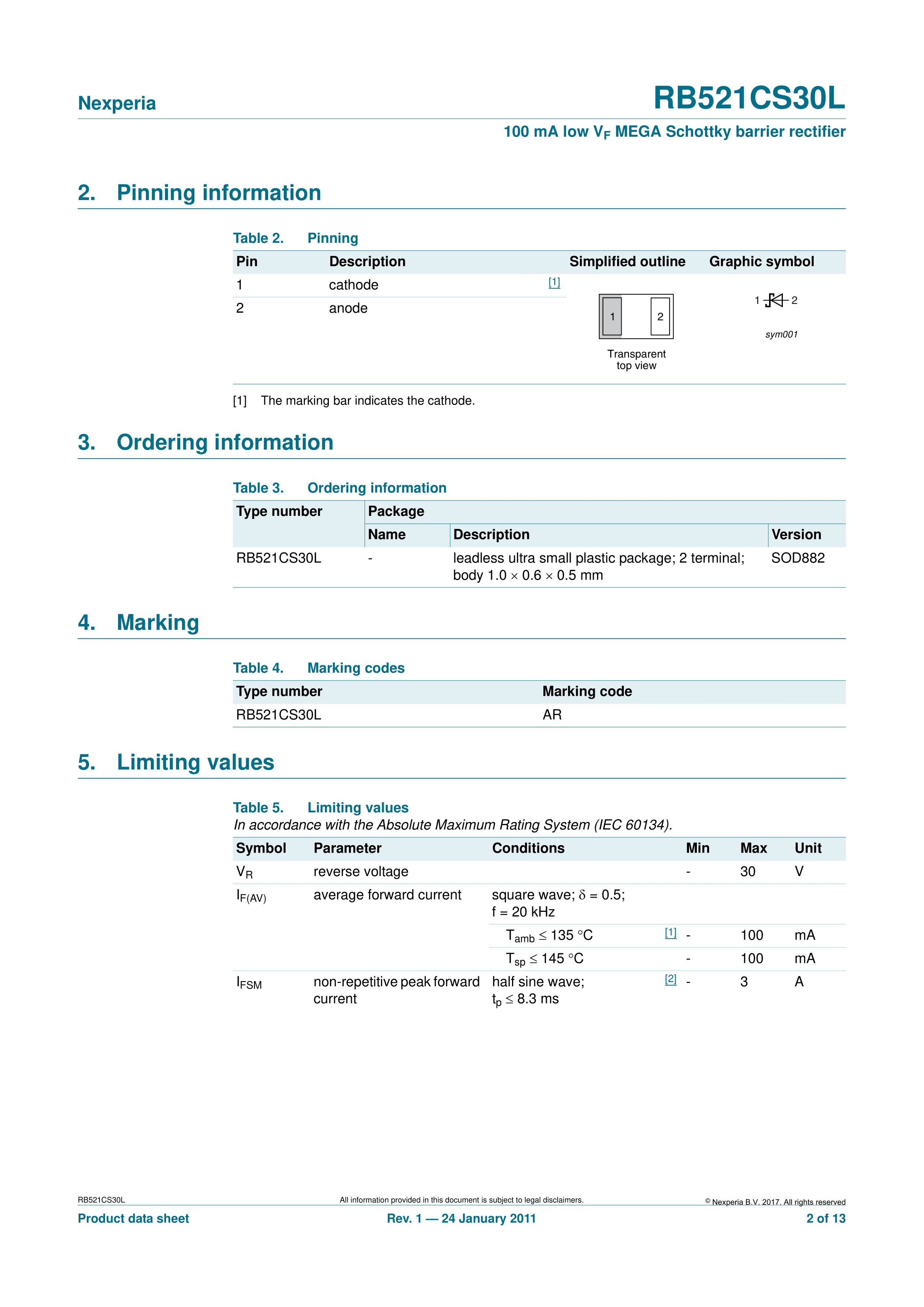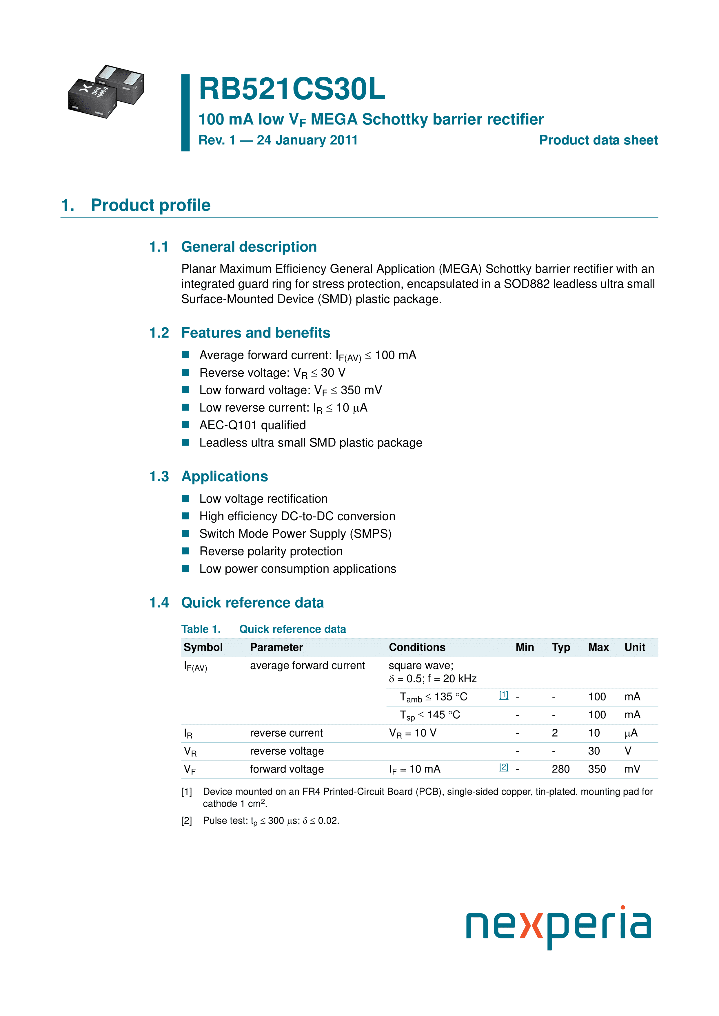 RB521CS30L315数据手册SOD882封装Nexperia(安世)PDF规格书,中英文下载