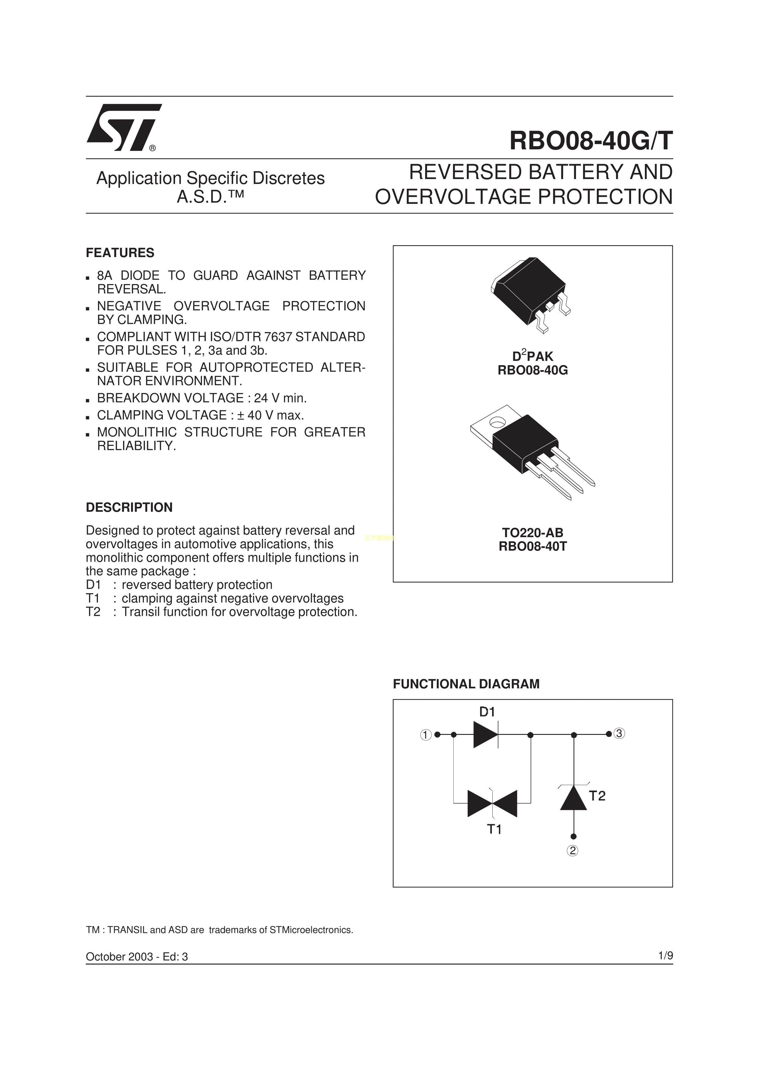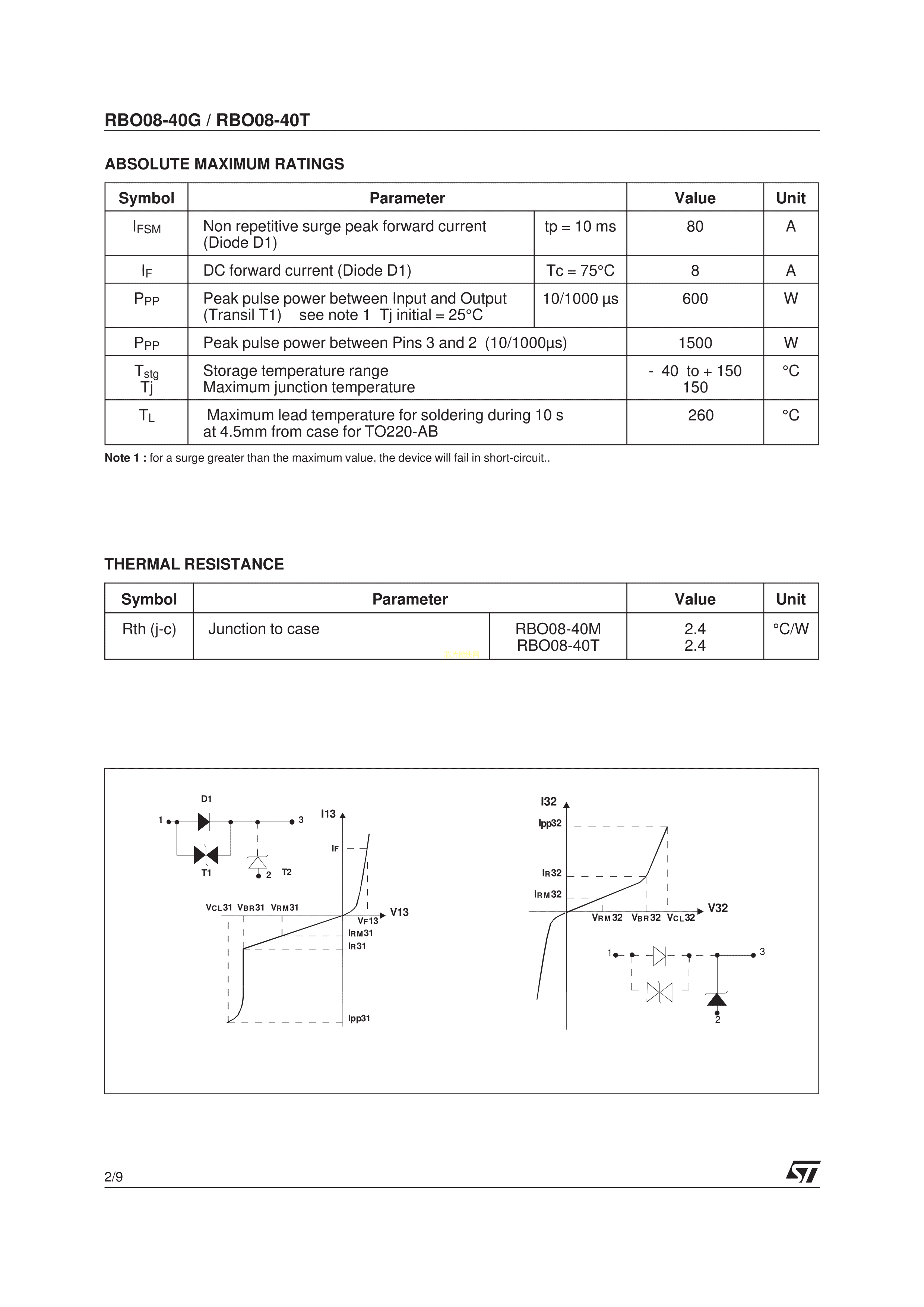 RBO08-40G数据手册D2PAK封装ST(意法半导体)PDF规格书,中英文下载