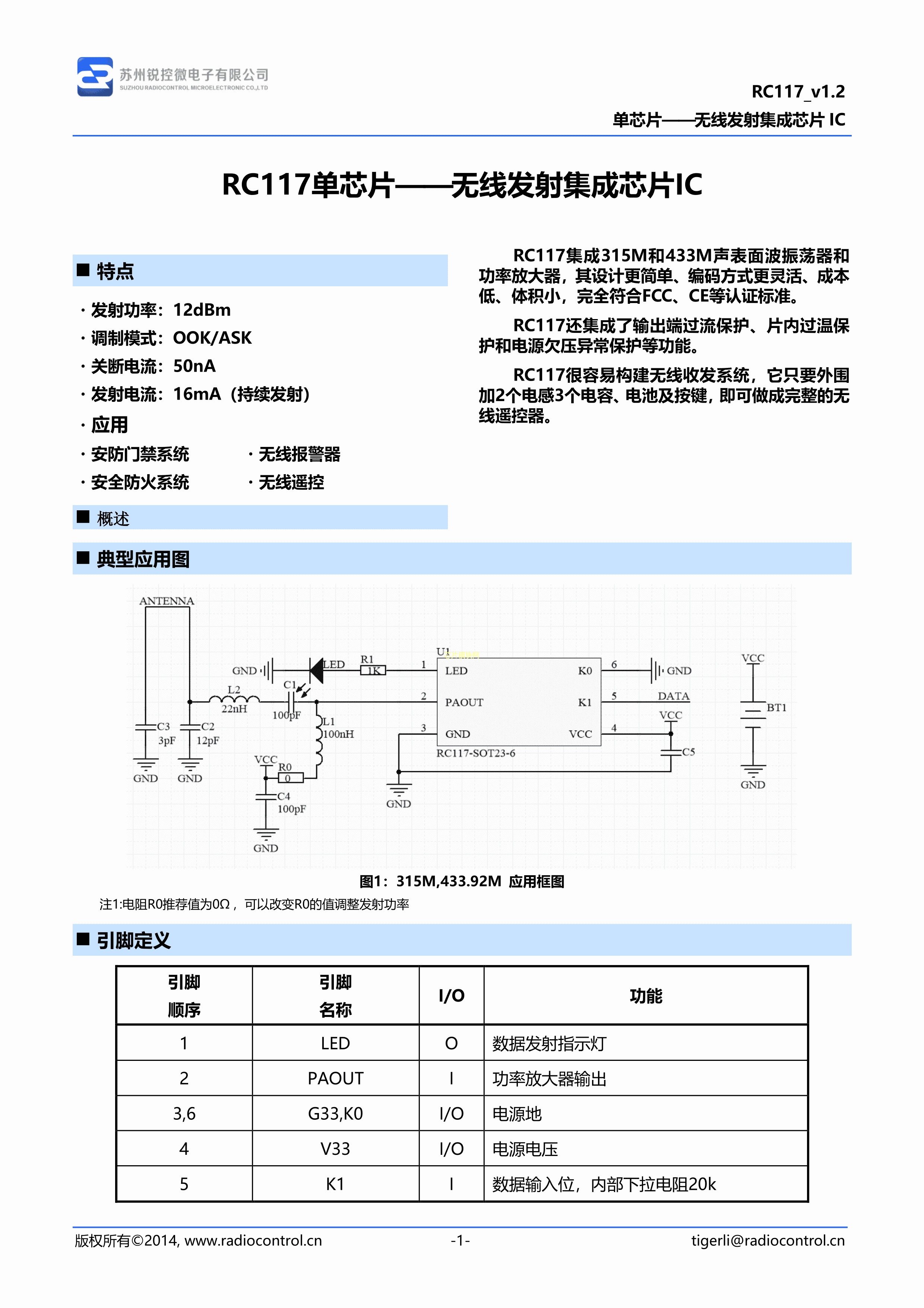 RC117-315数据手册SOT-23-6封装RC(锐控电子)PDF规格书,中英文下载