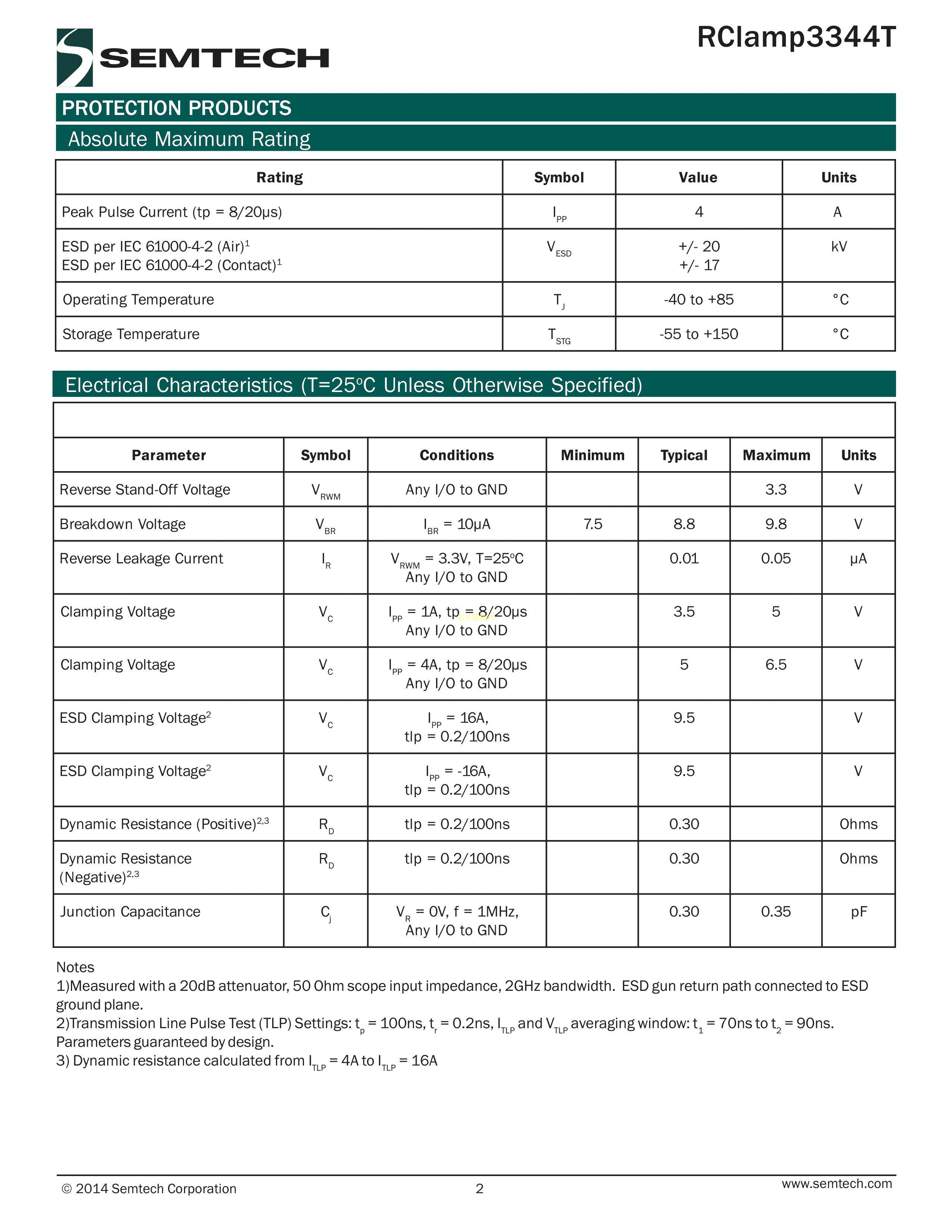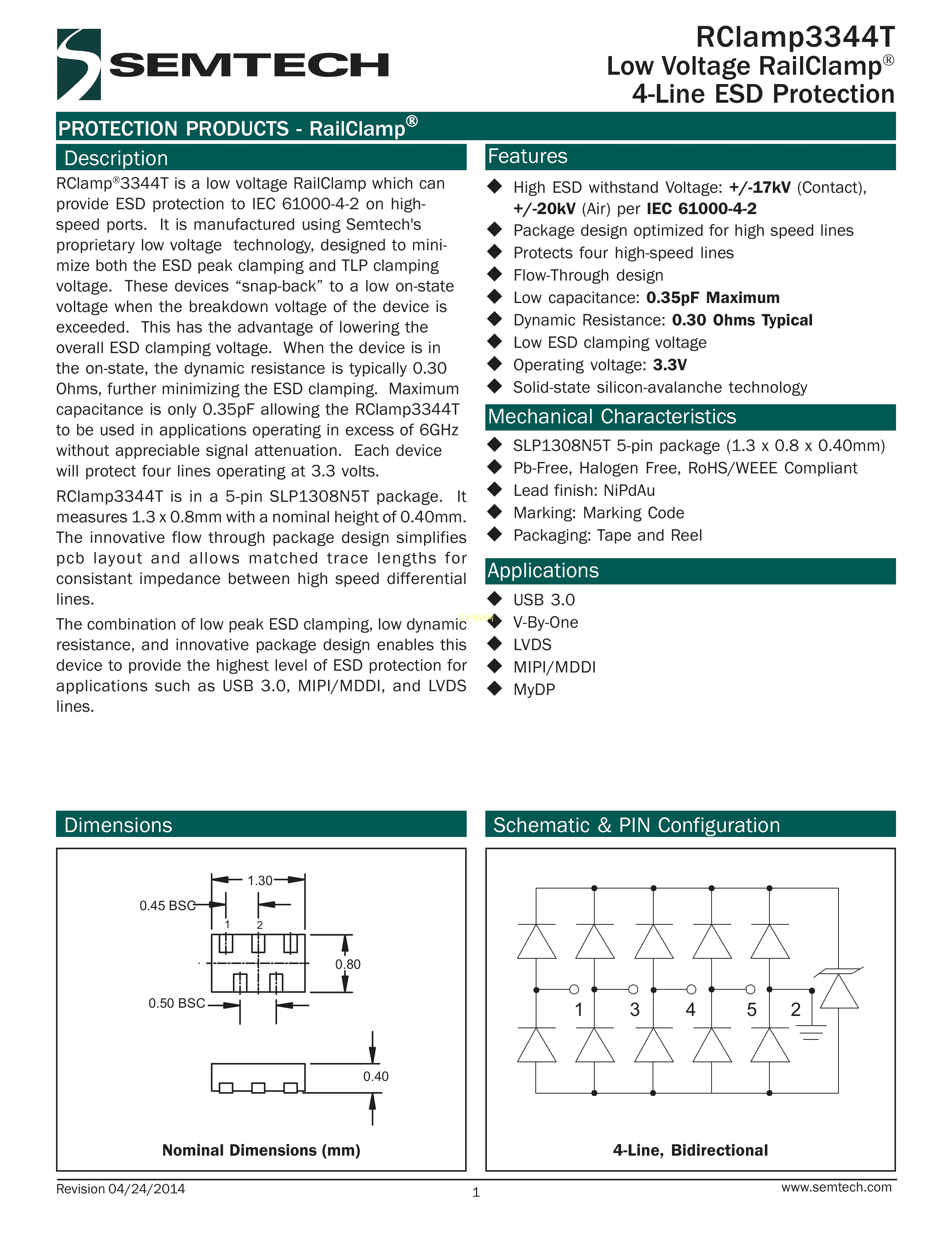 RCLAMP3344T.TNT数据手册SLP1308N5T封装SEMTECHPDF规格书,中英文下载