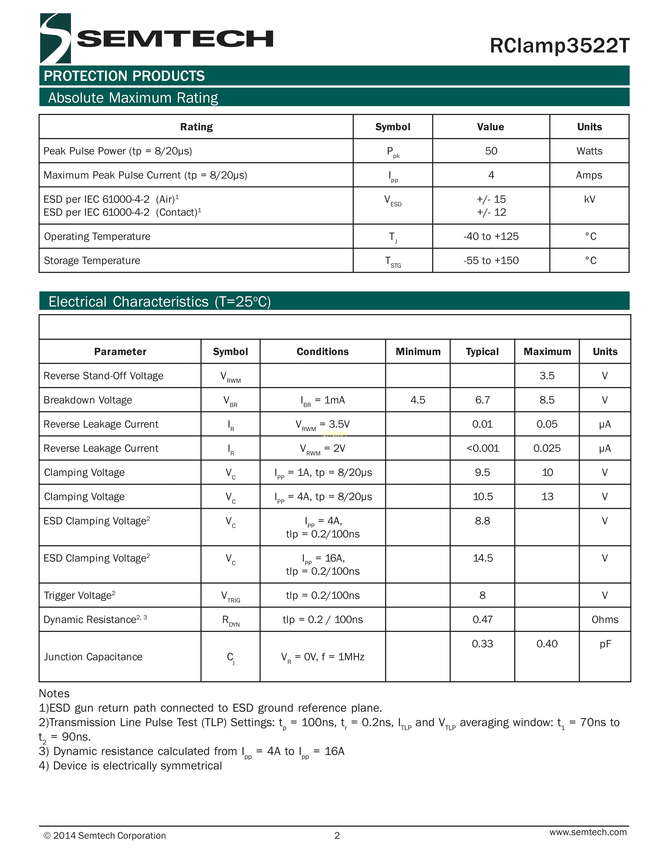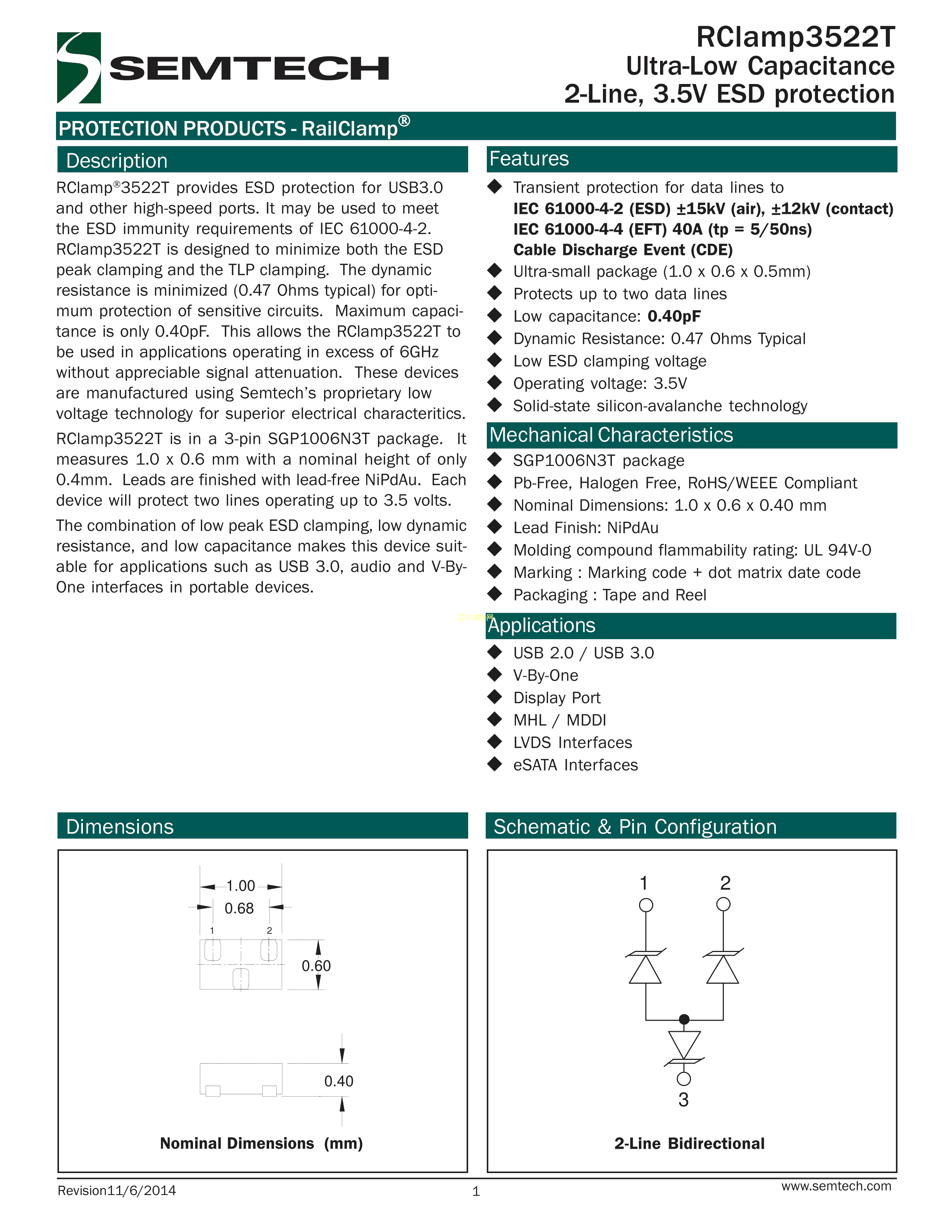 RCLAMP3522T.TFT数据手册SGP1006N3T封装SEMTECHPDF规格书,中英文下载