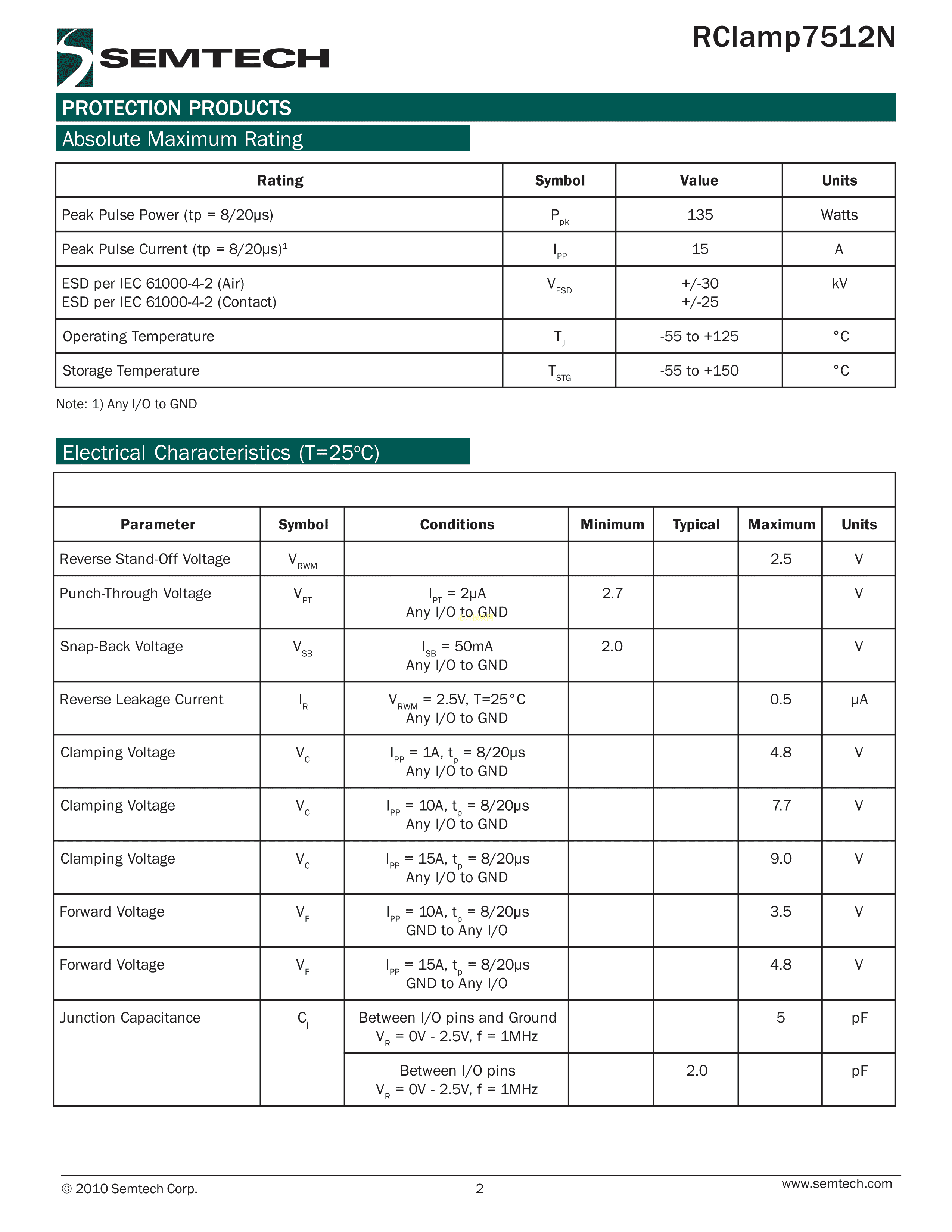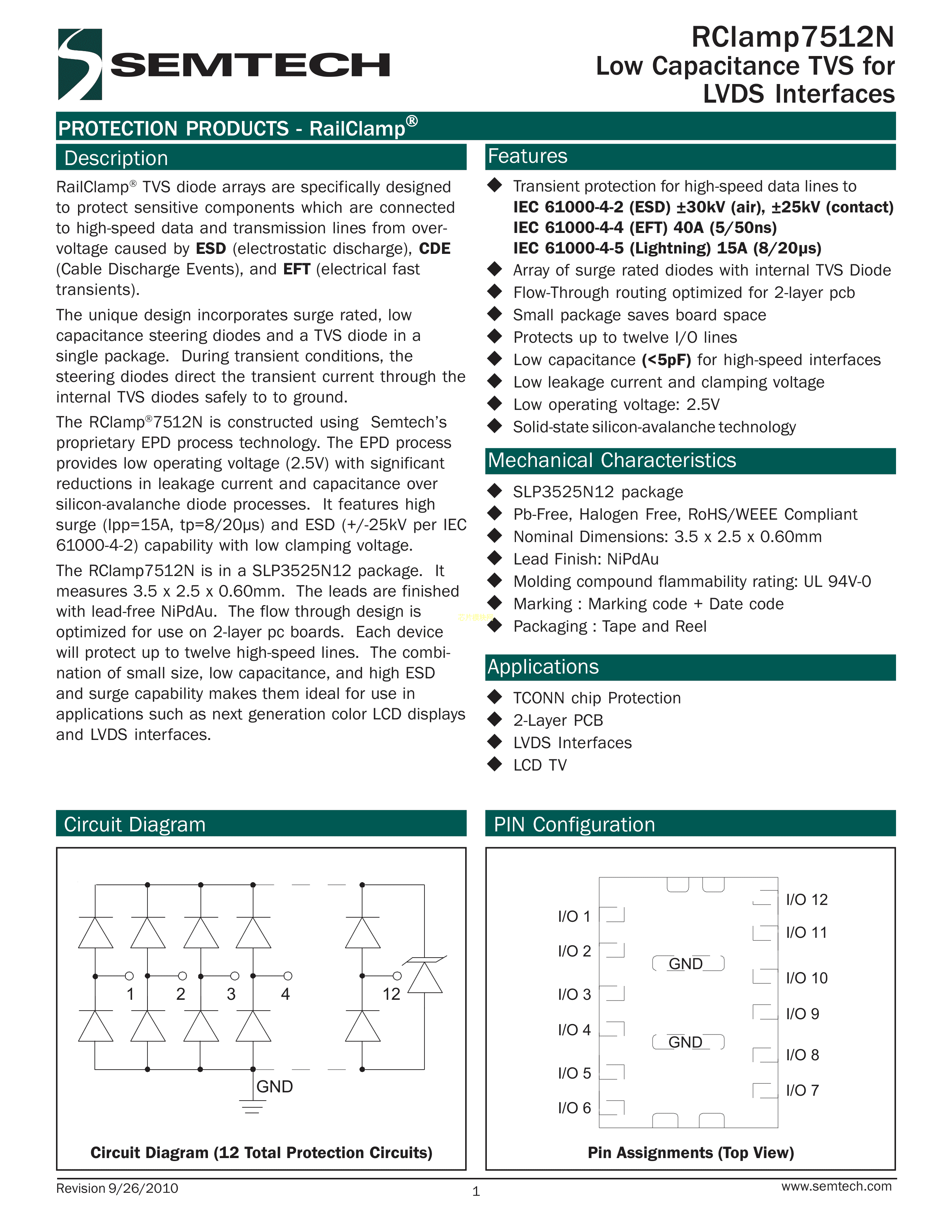 RCLAMP7512N.TCT数据手册SLP3525N12封装SEMTECHPDF规格书,中英文下载