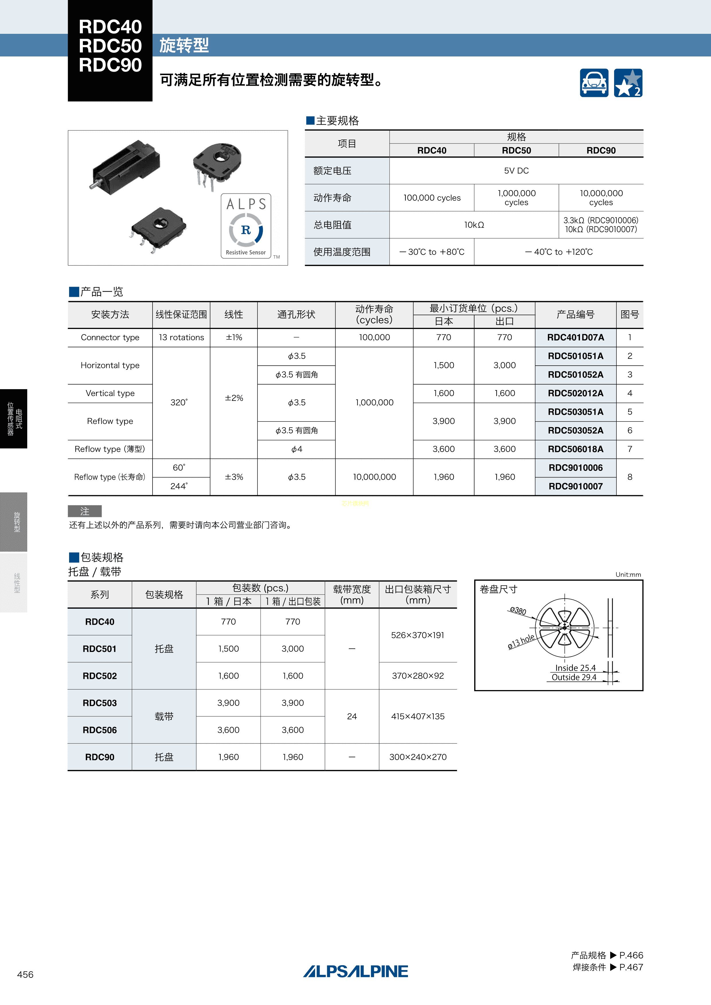 RDC9010006数据手册ThroughHole封装ALPSALPINE(阿尔卑斯阿尔派)PDF规格书,中英文下载