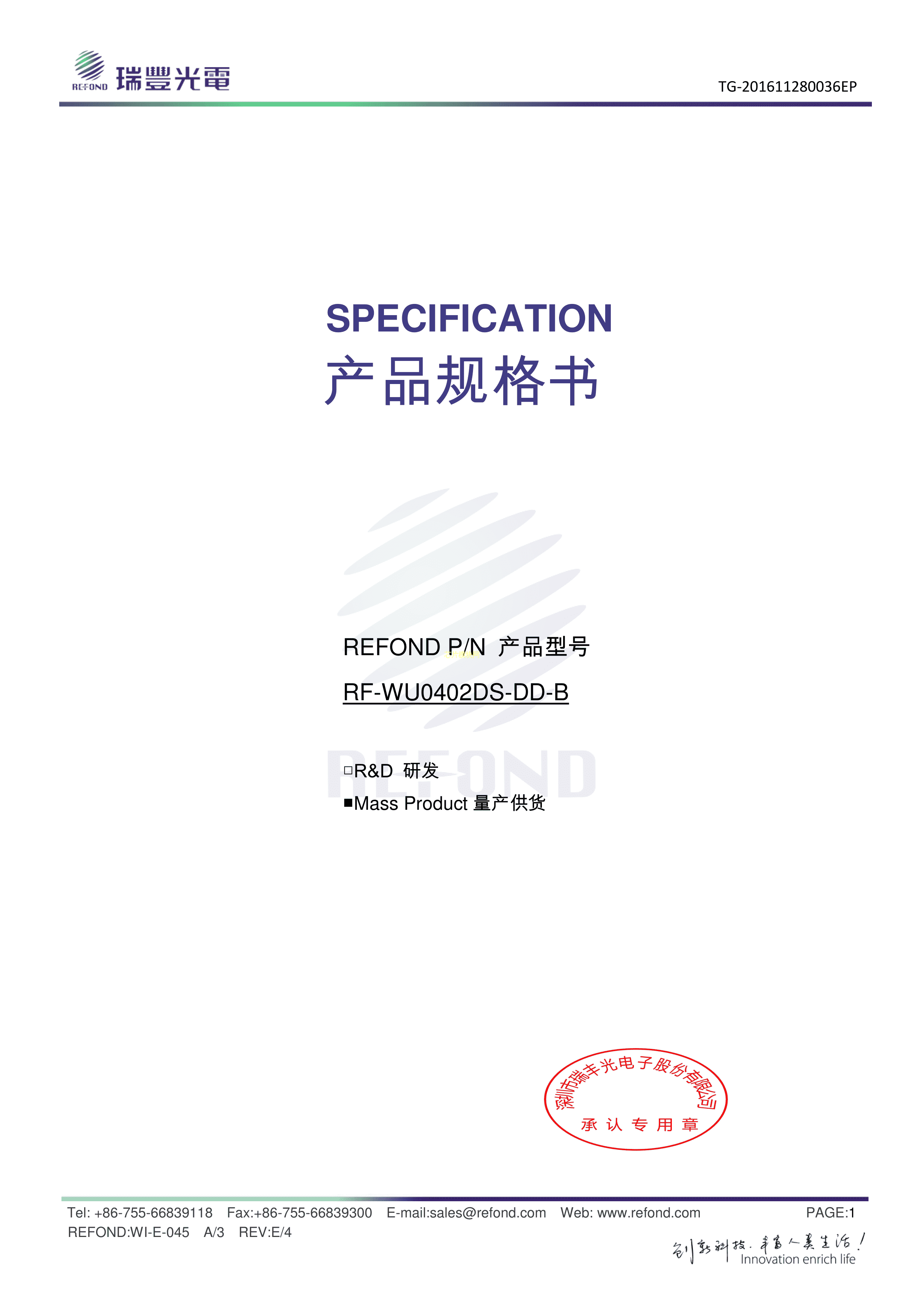 RF-WU0402DS-DD-B数据手册0402封装Refond(瑞丰)PDF规格书,中英文下载