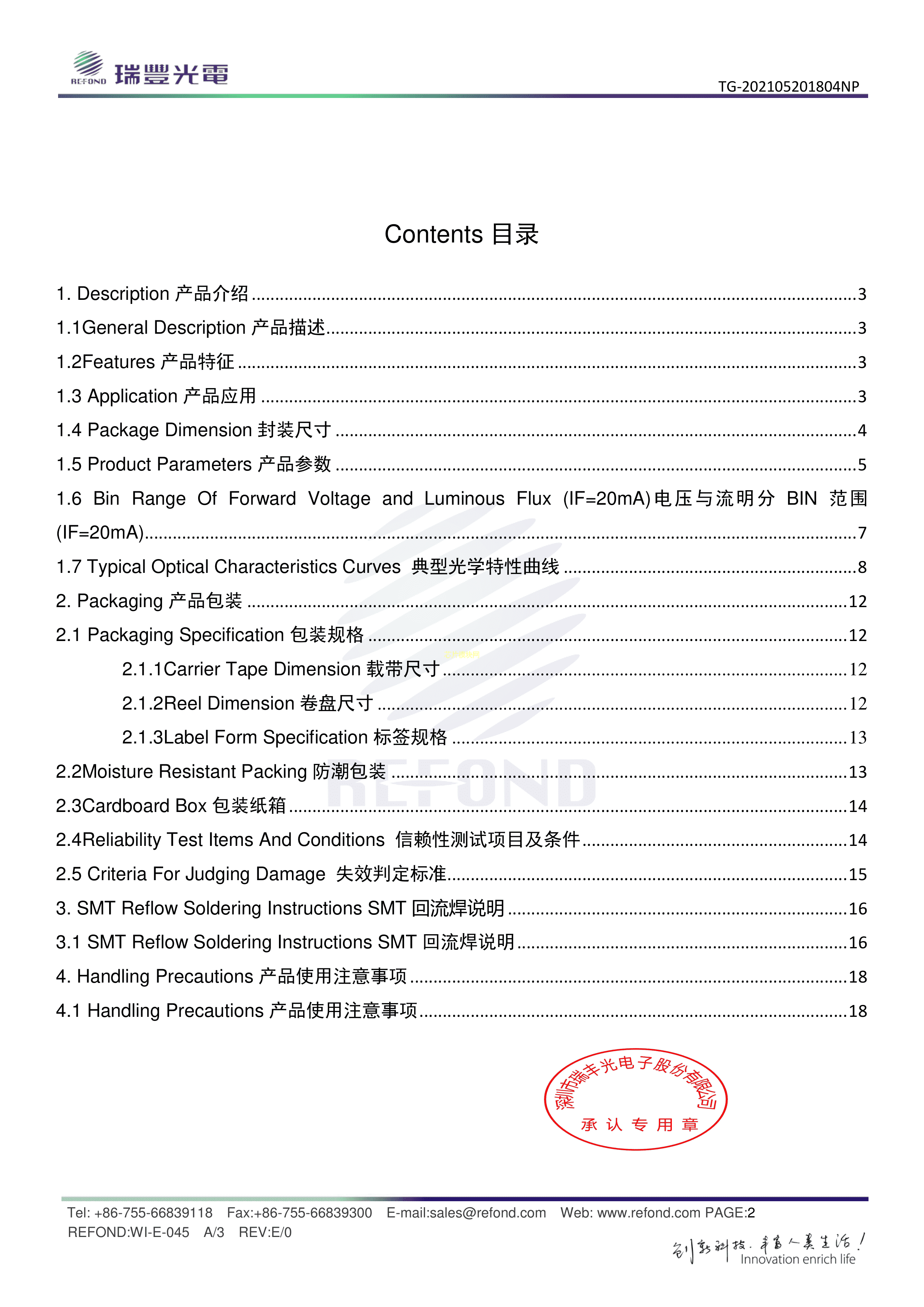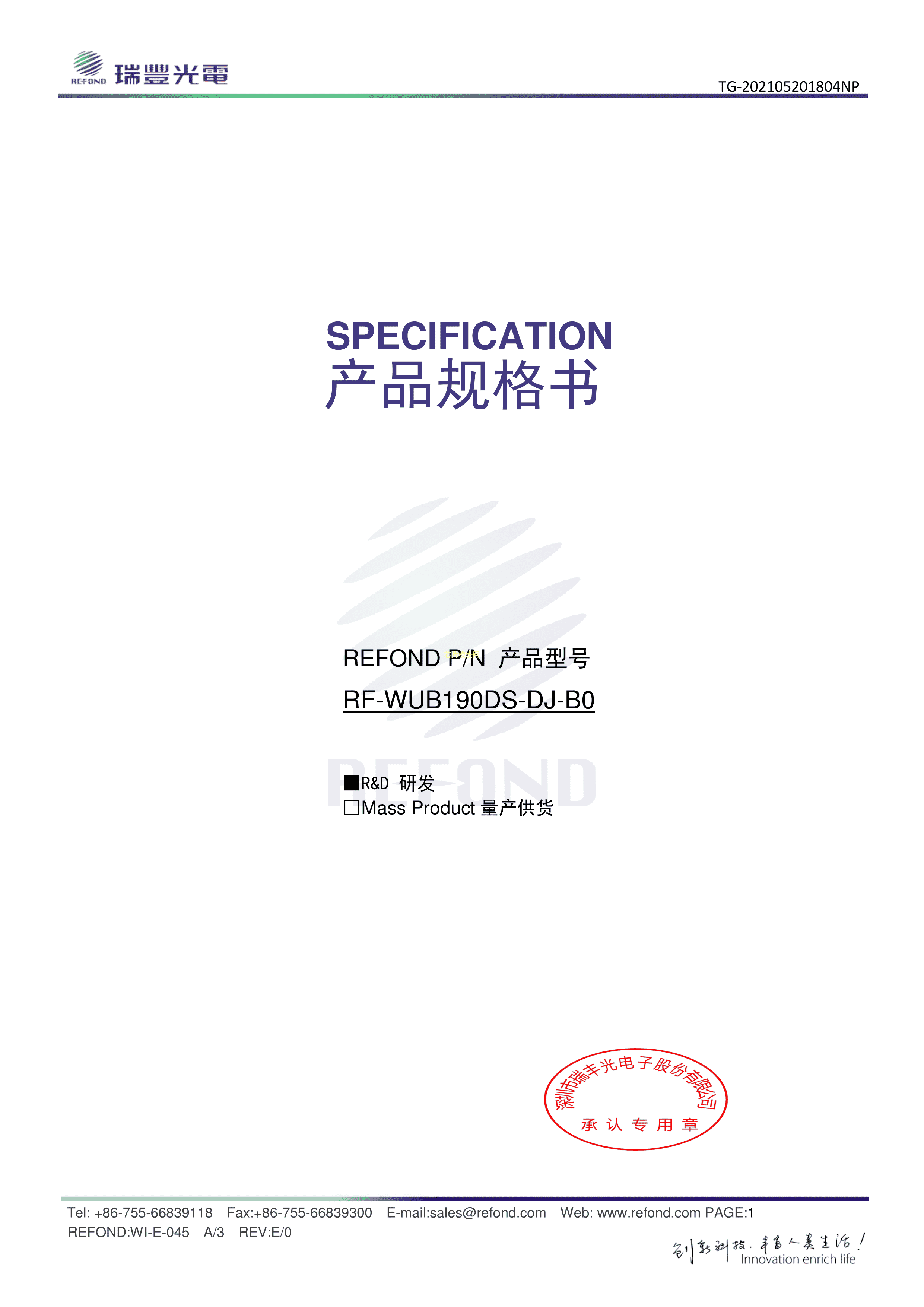 RF-WUB190DS-DJ-B0数据手册0603封装Refond(瑞丰)PDF规格书,中英文下载