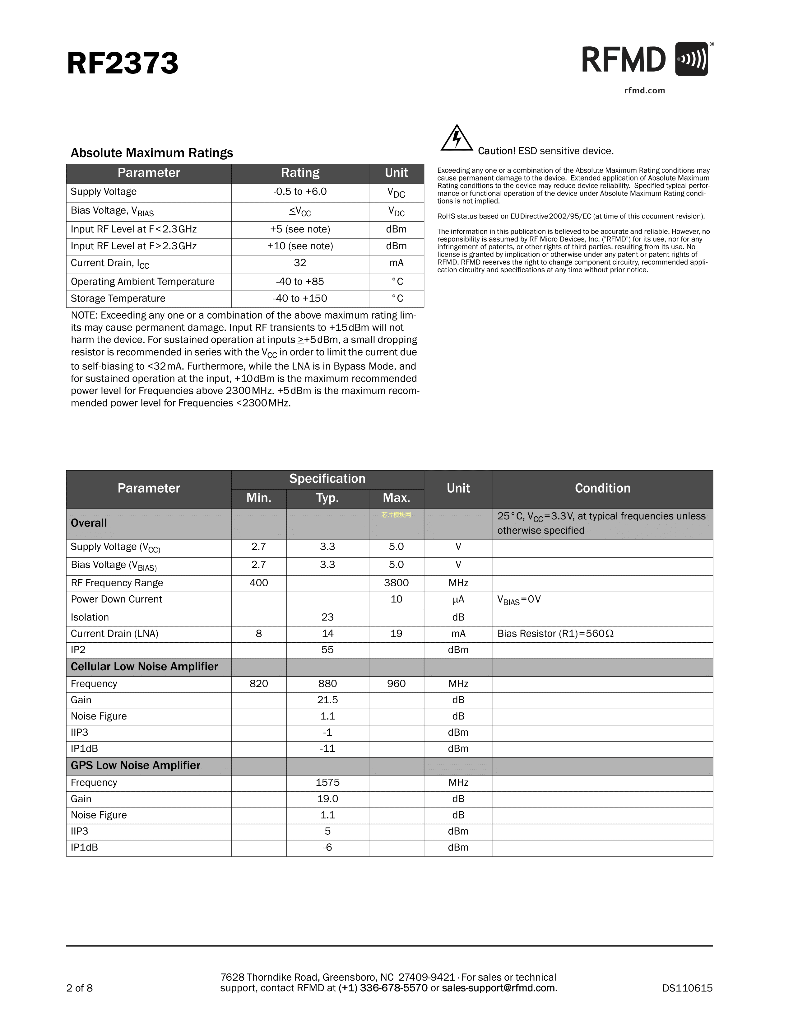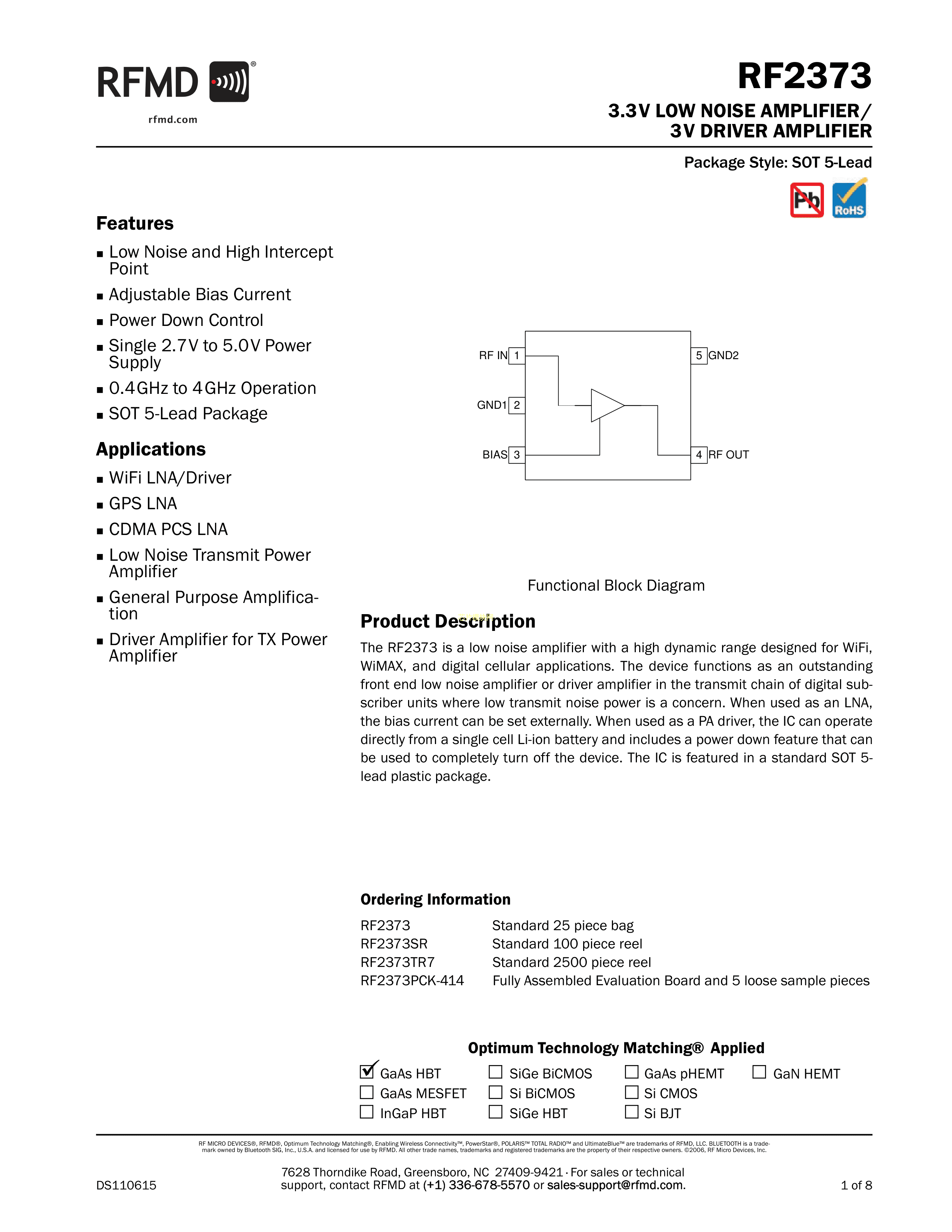 RF2373TR7数据手册SOT-5-Lead封装QorvoPDF规格书,中英文下载