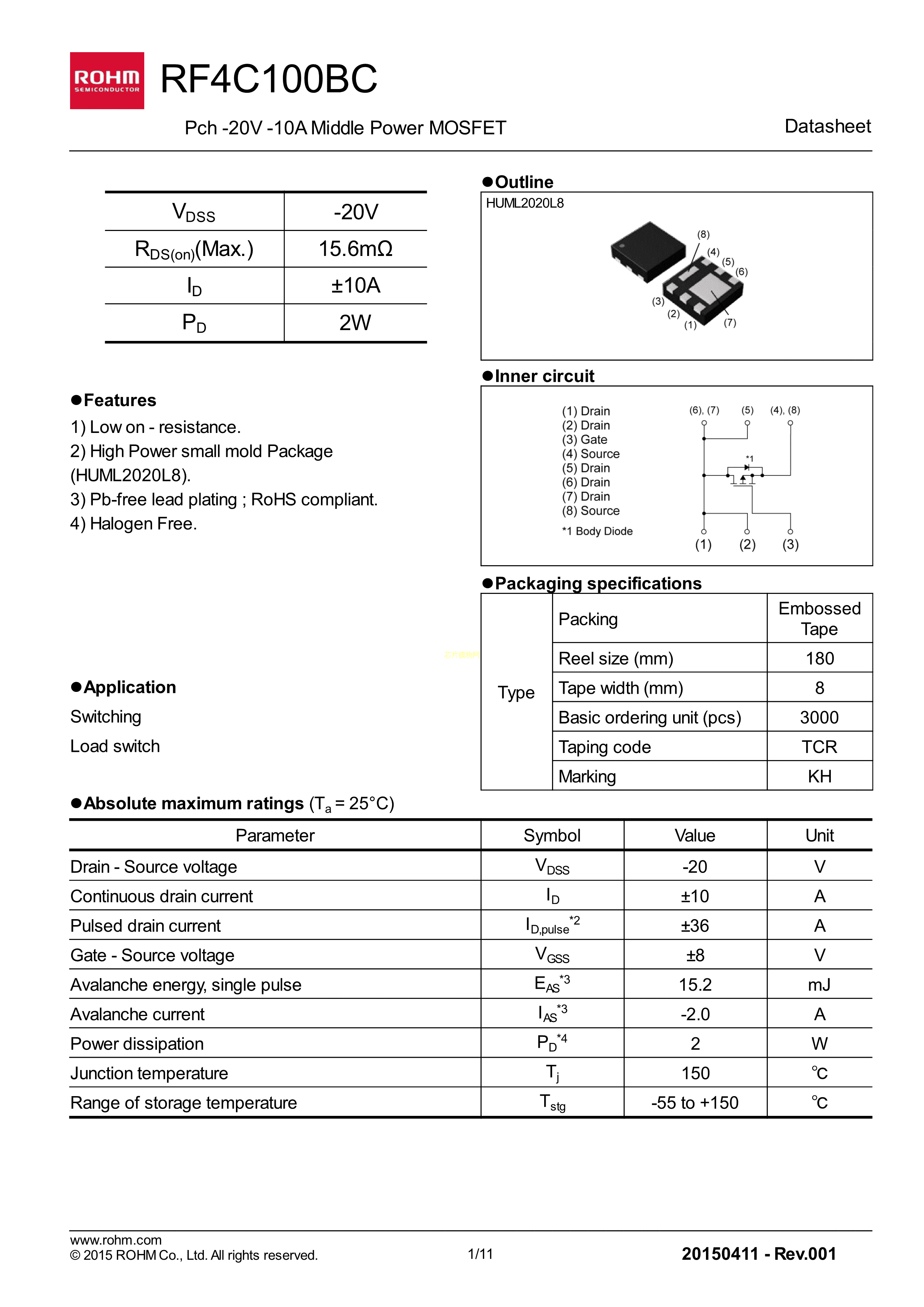 RF4C100BCTCR数据手册HUML2020L8封装ROHM(罗姆)PDF规格书,中英文下载