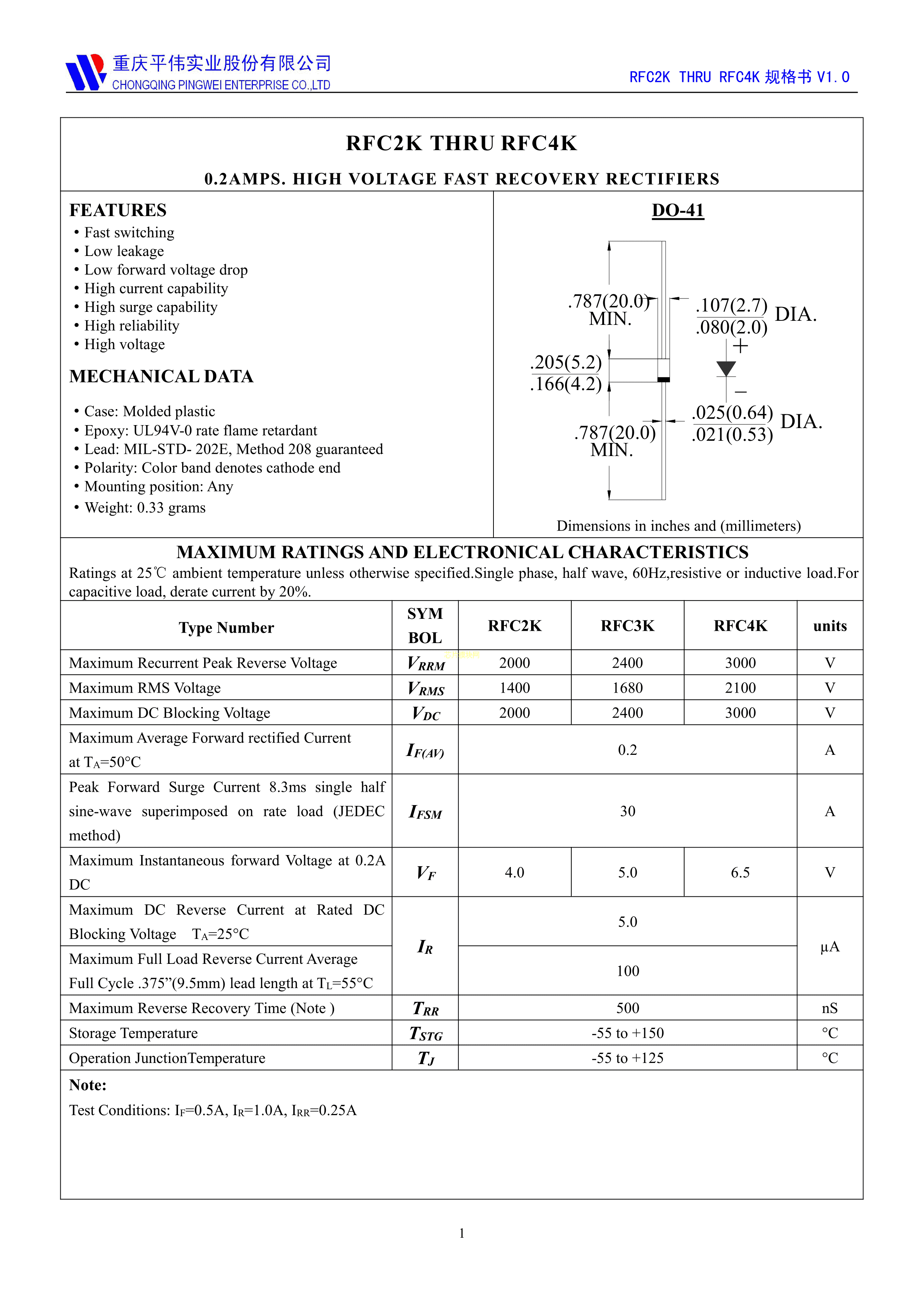 RFC3K数据手册DO-41封装PINGWEI(平伟)PDF规格书,中英文下载