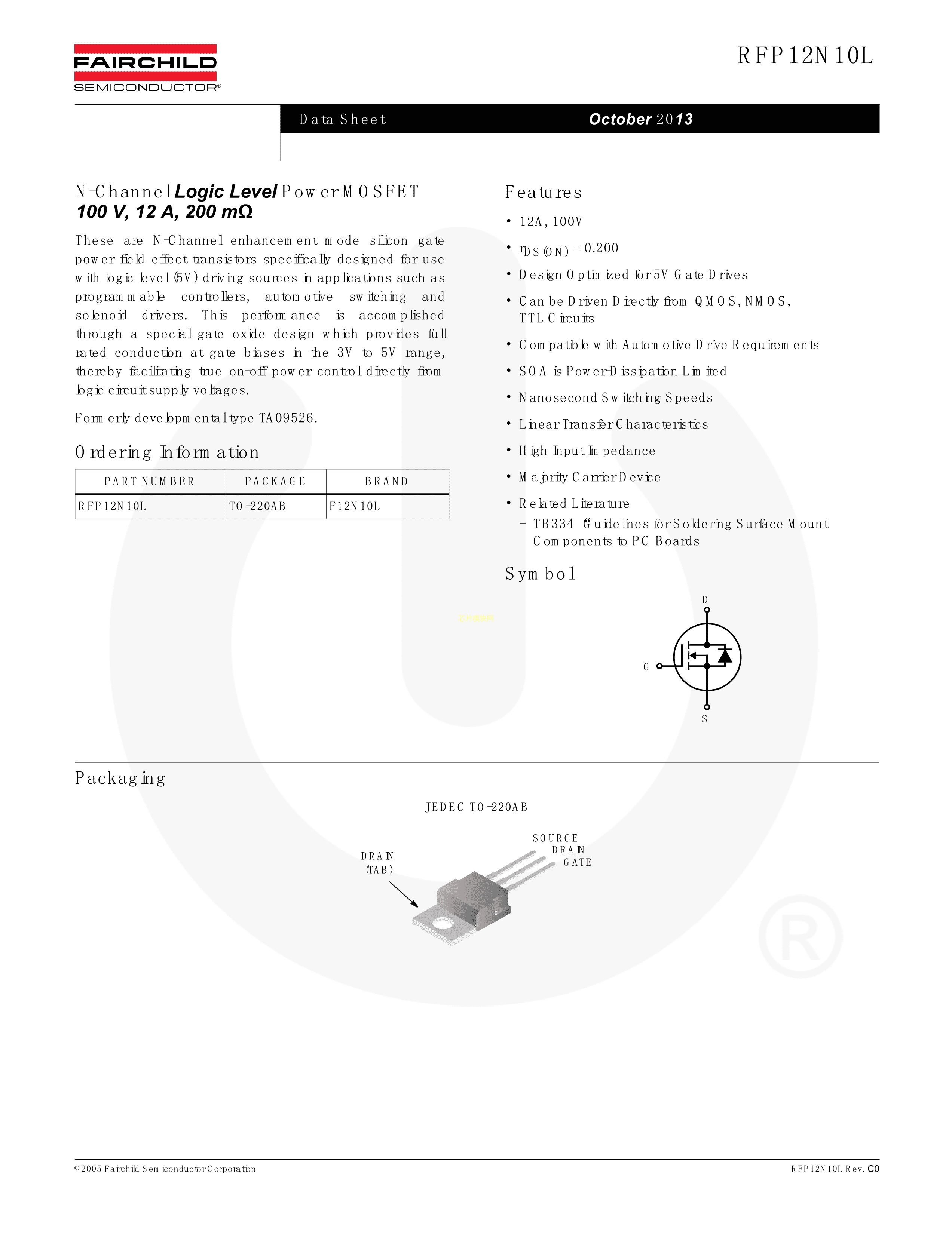 RFP12N10L数据手册TO-220AB封装onsemi(安森美)PDF规格书,中英文下载