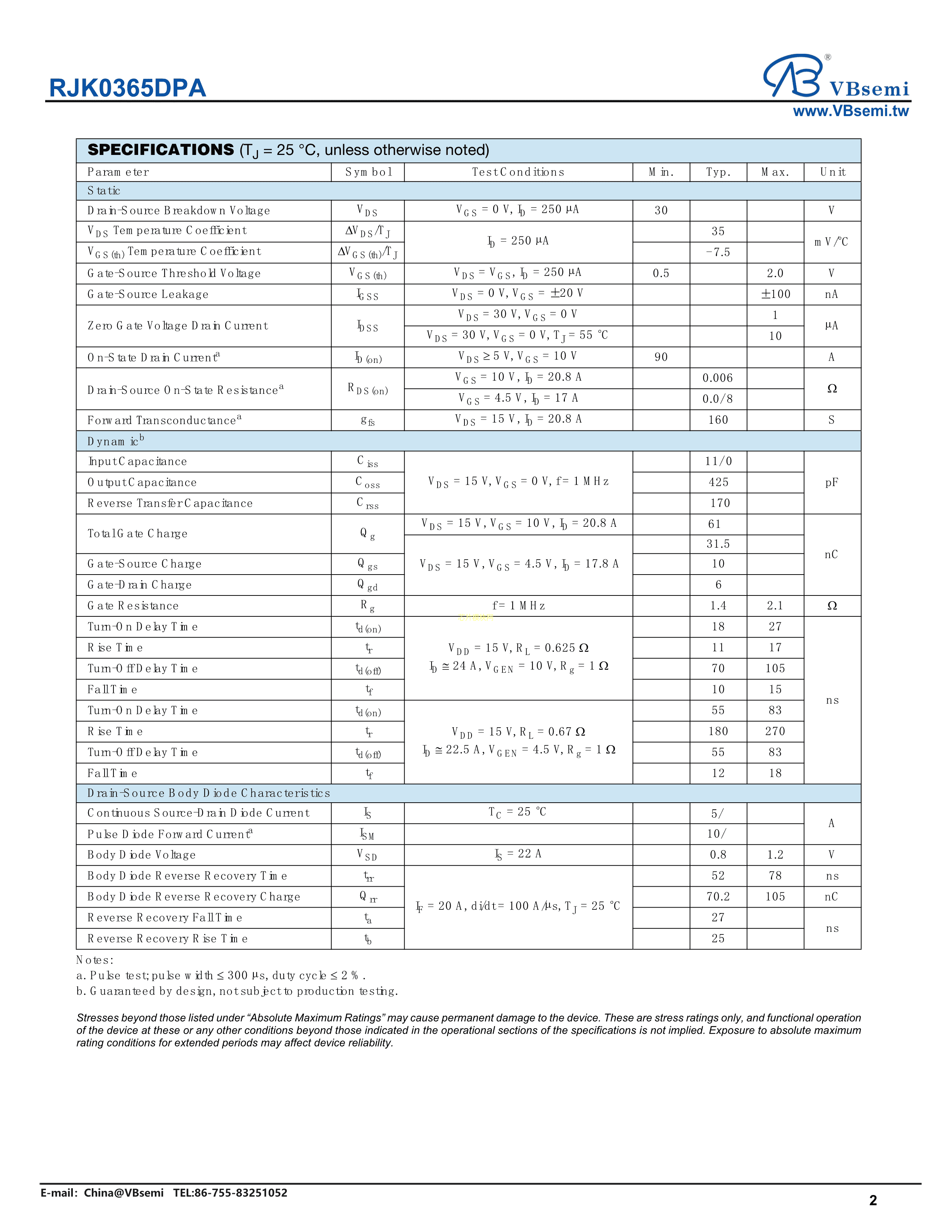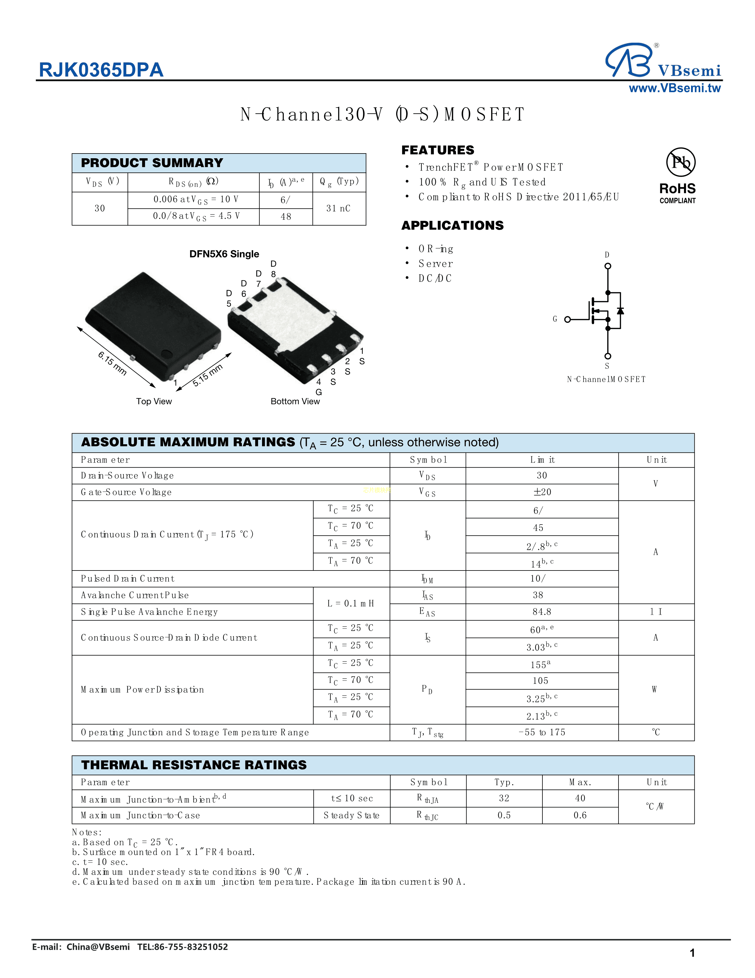 RJK0365DPA数据手册QFN8(5X6)封装VBsemi(台湾微碧)PDF规格书,中英文下载