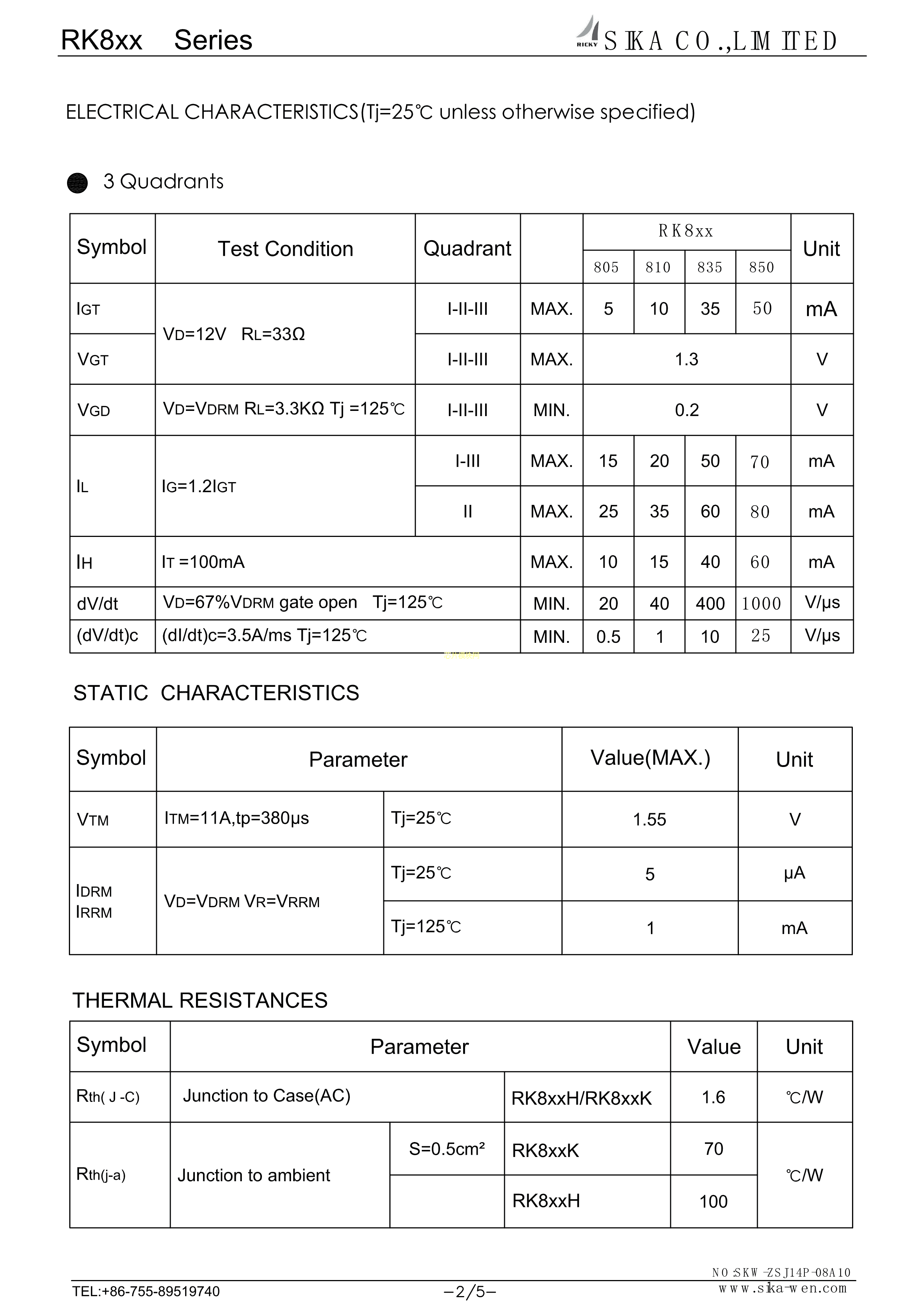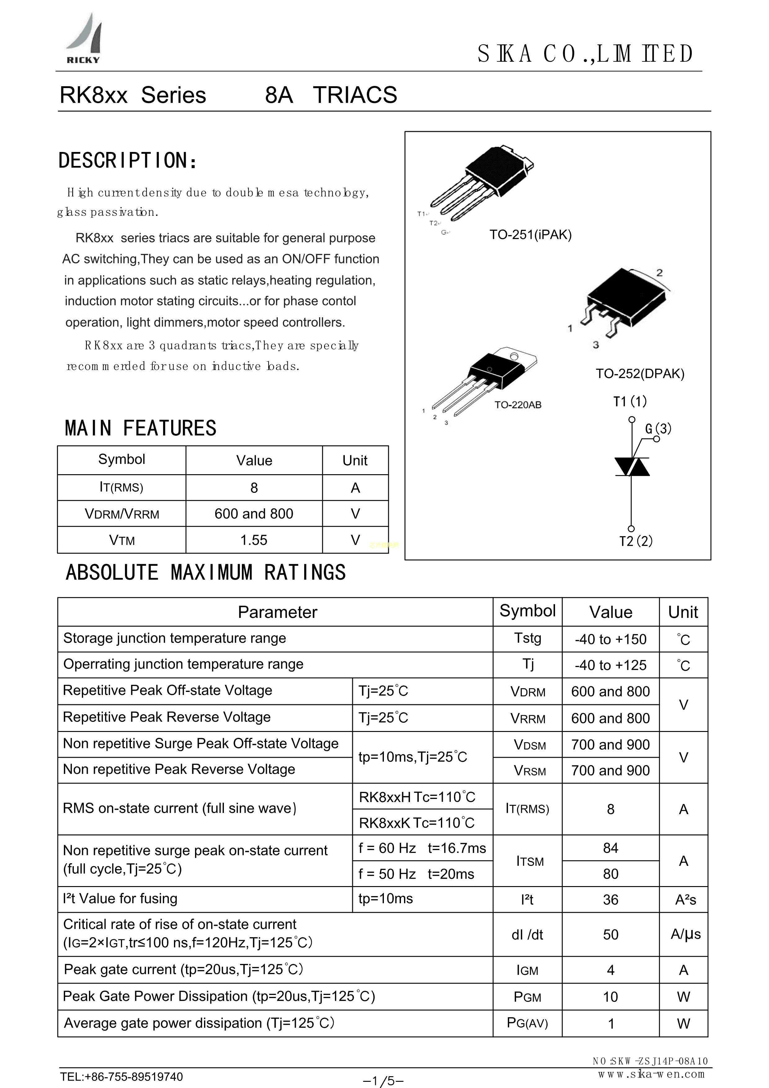 RK810K-800数据手册TO-252封装RICKYPDF规格书,中英文下载
