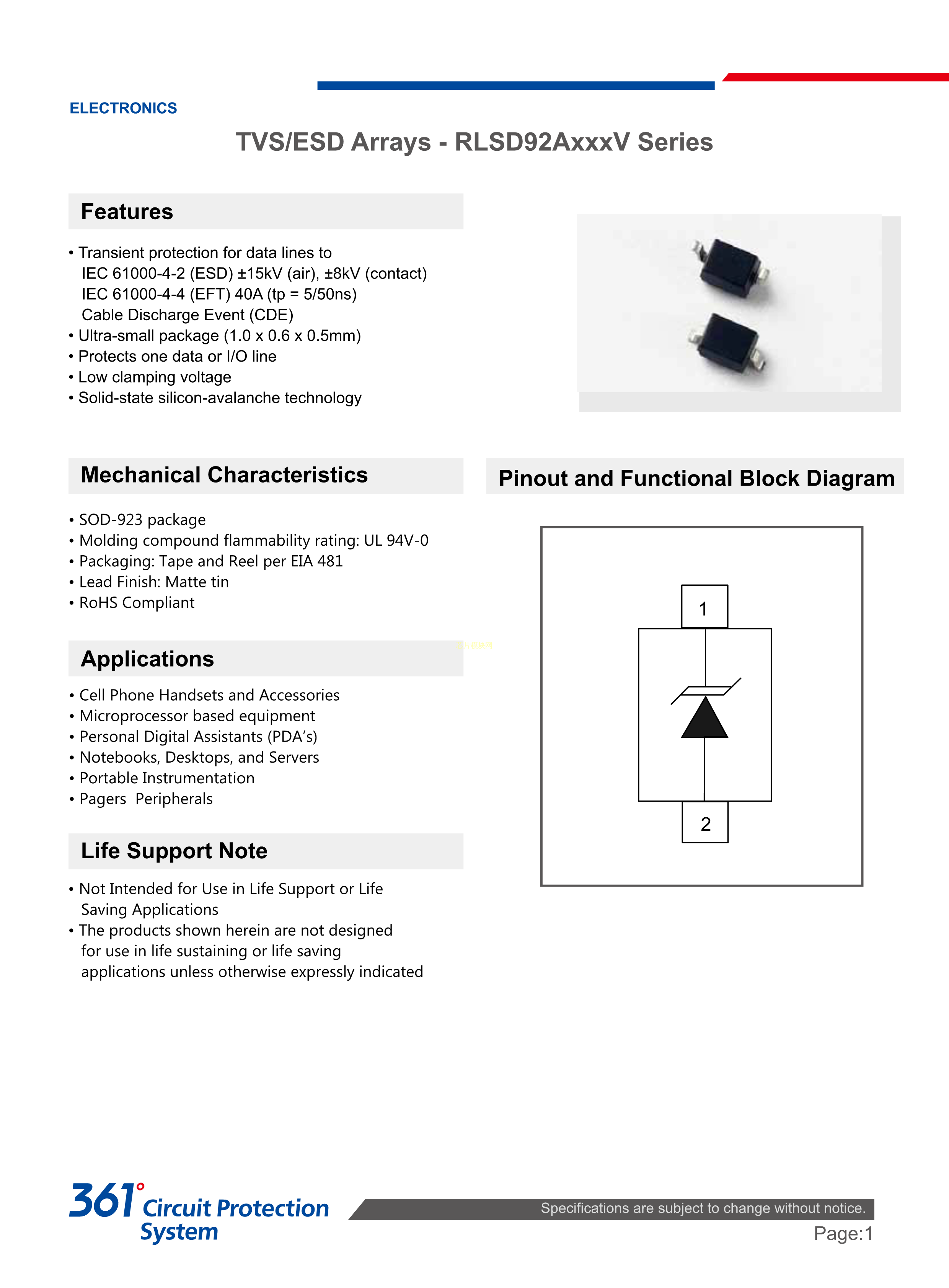 RLSD92A051V数据手册SOD-923封装RUILON(瑞隆源)PDF规格书,中英文下载