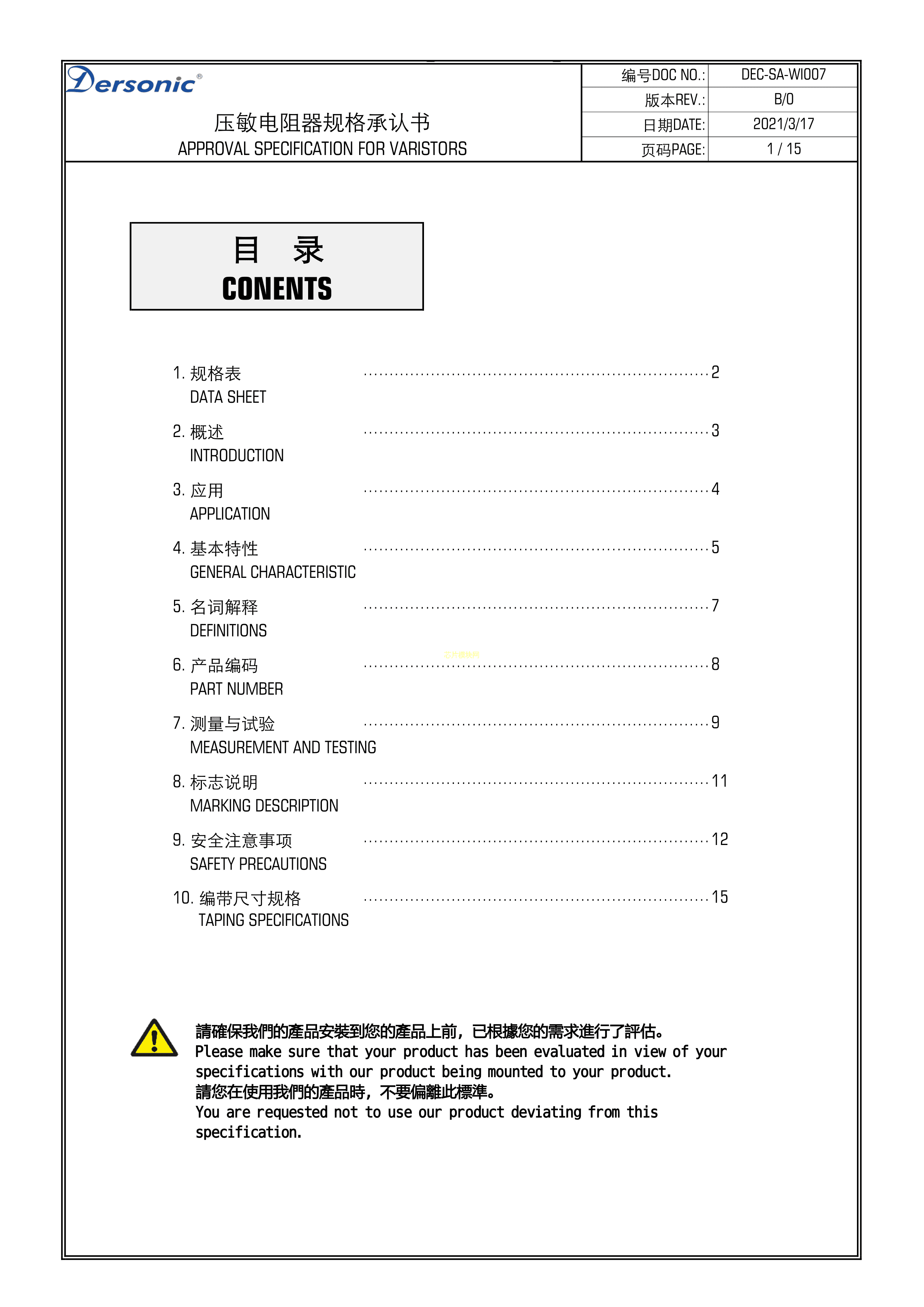 RM14D391KD1IE100数据手册径向引线P7.5mm封装Dersonic(德尔创)PDF规格书,中英文下载
