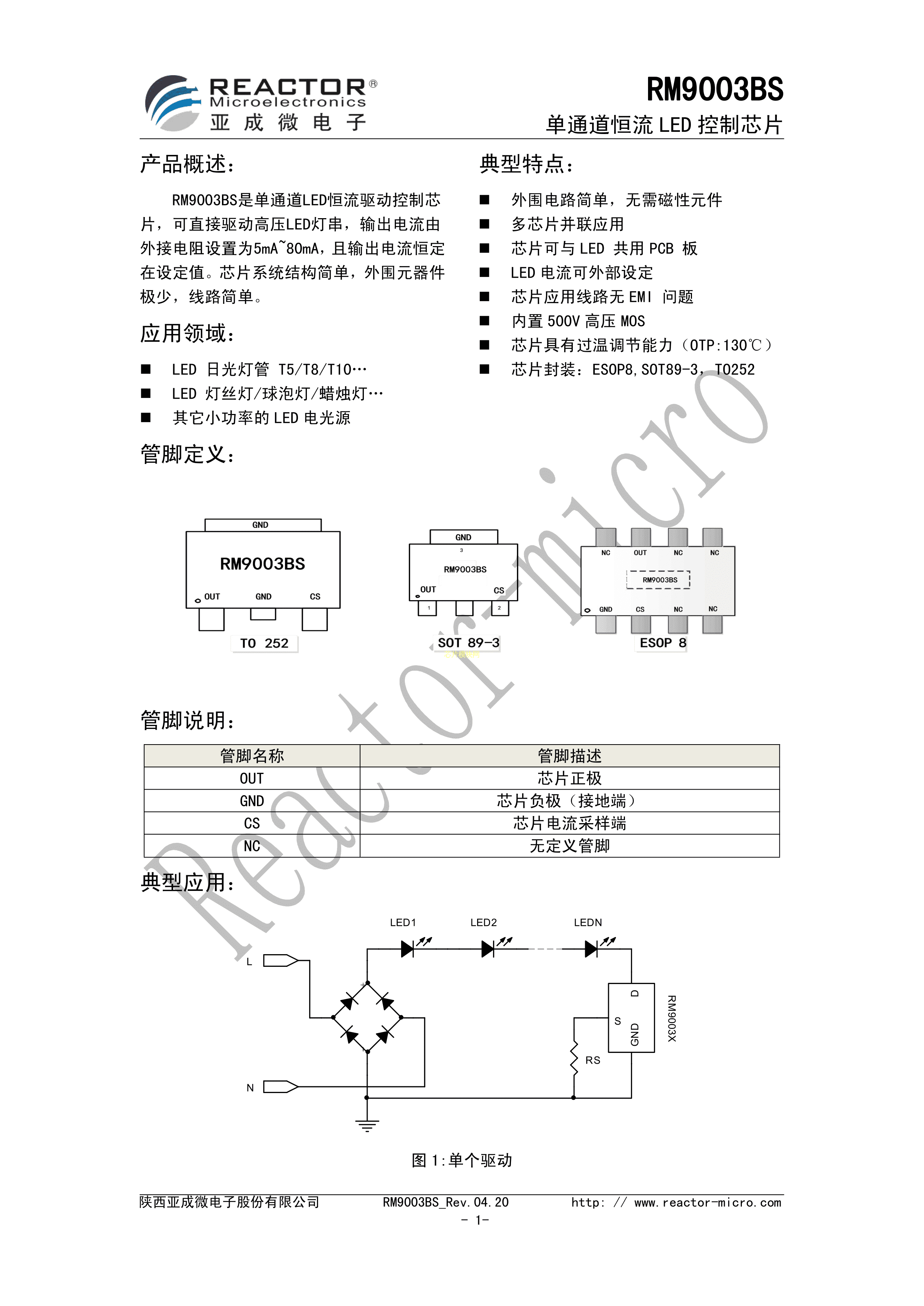 RM9003BS数据手册ESOP-8封装Reactor-Micro(亚成微)PDF规格书,中英文下载