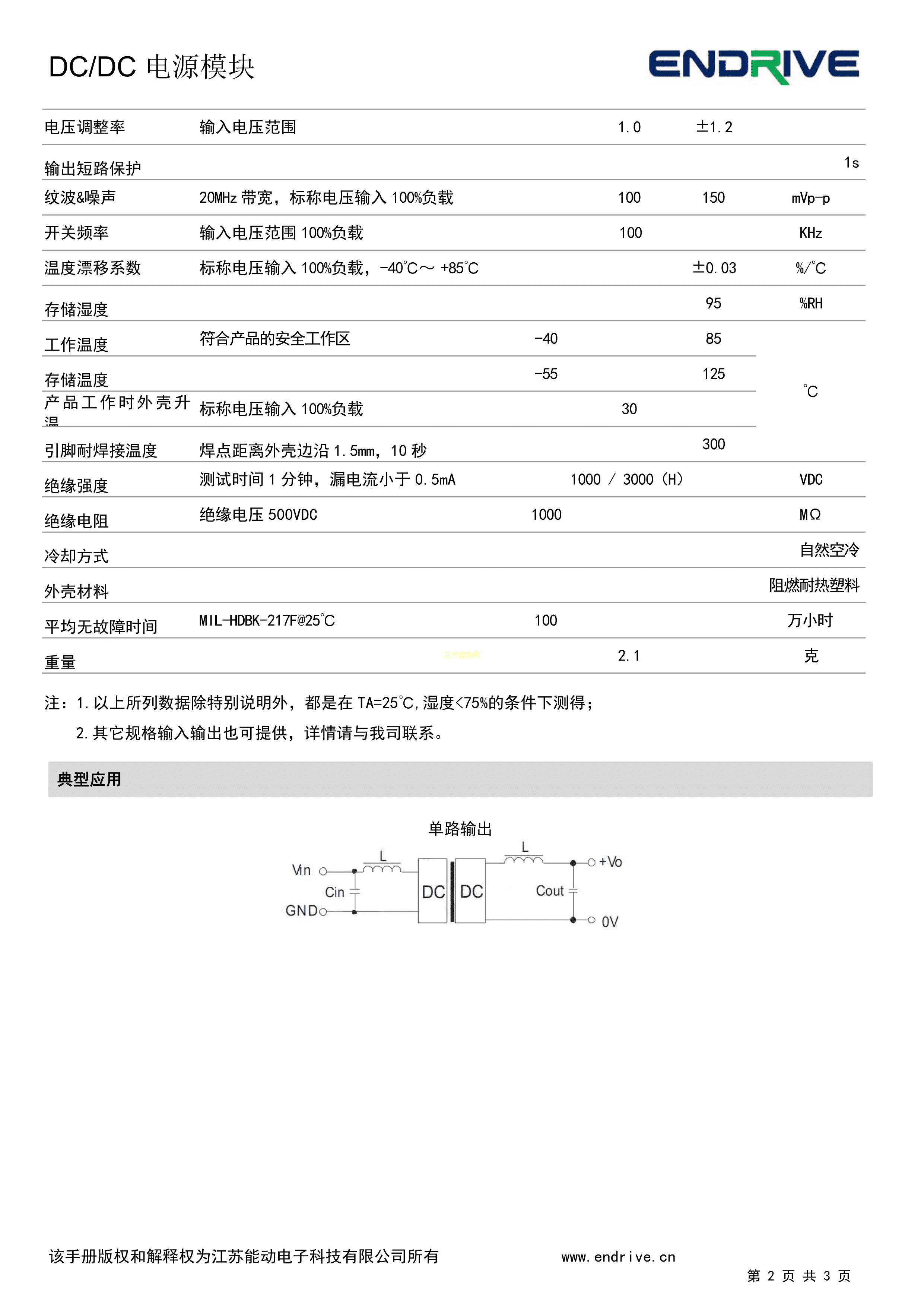 RMP5-05S05数据手册插件封装ENDRIVE(江苏能动)PDF规格书,中英文下载