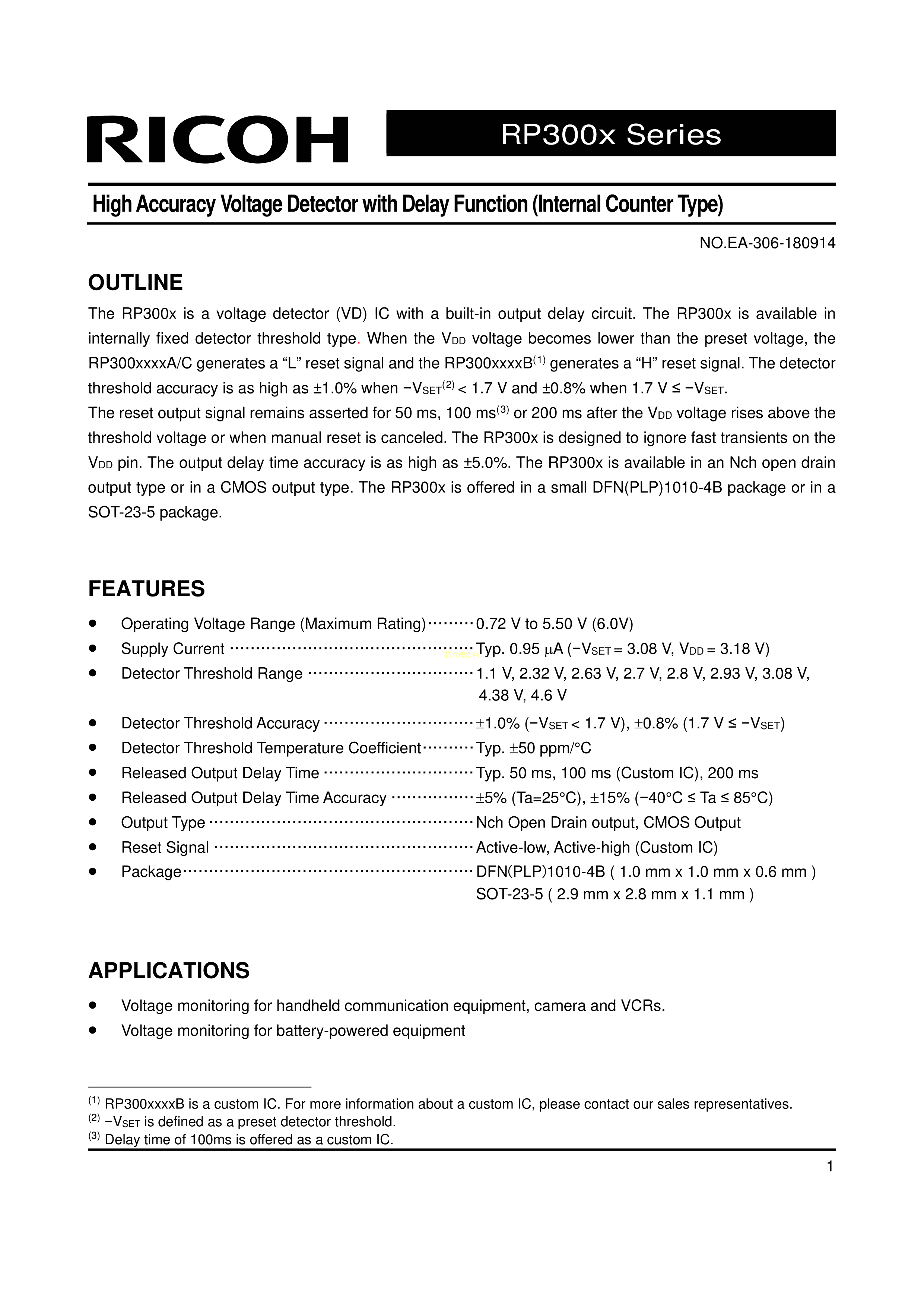 RP300K43DC8-TR数据手册DFN(PLP)1010-4B封装RICOH(理光)PDF规格书