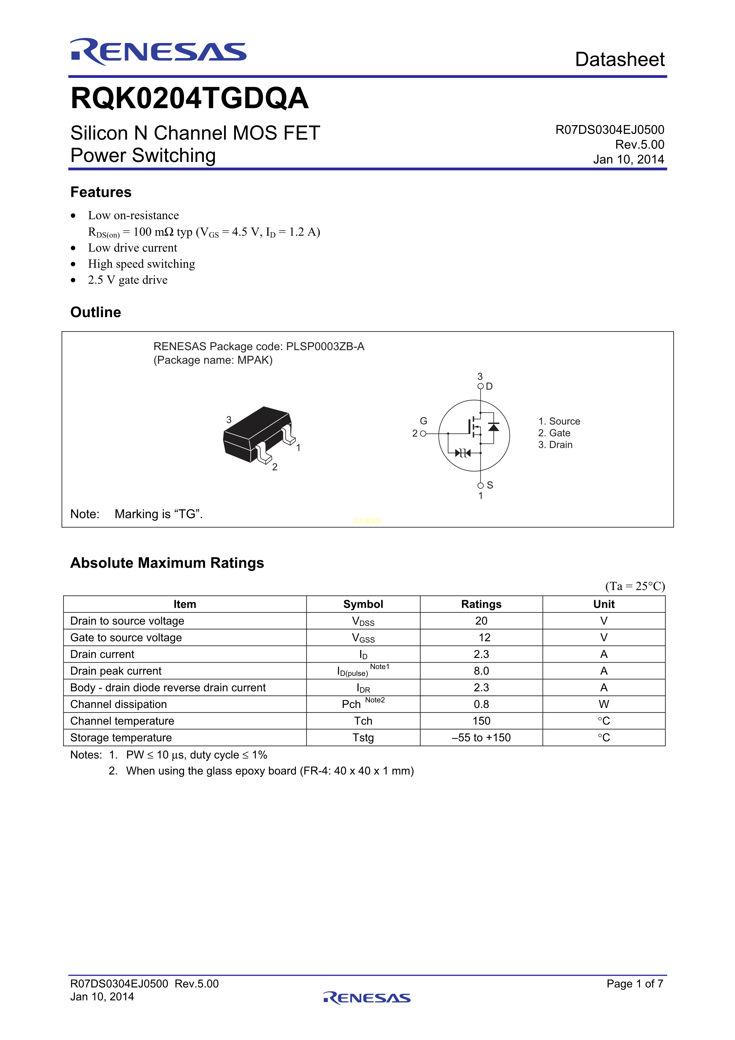 RQK0204TGDQATL-H数据手册SC-59A封装RENESAS(瑞萨)-IDTPDF规格书,