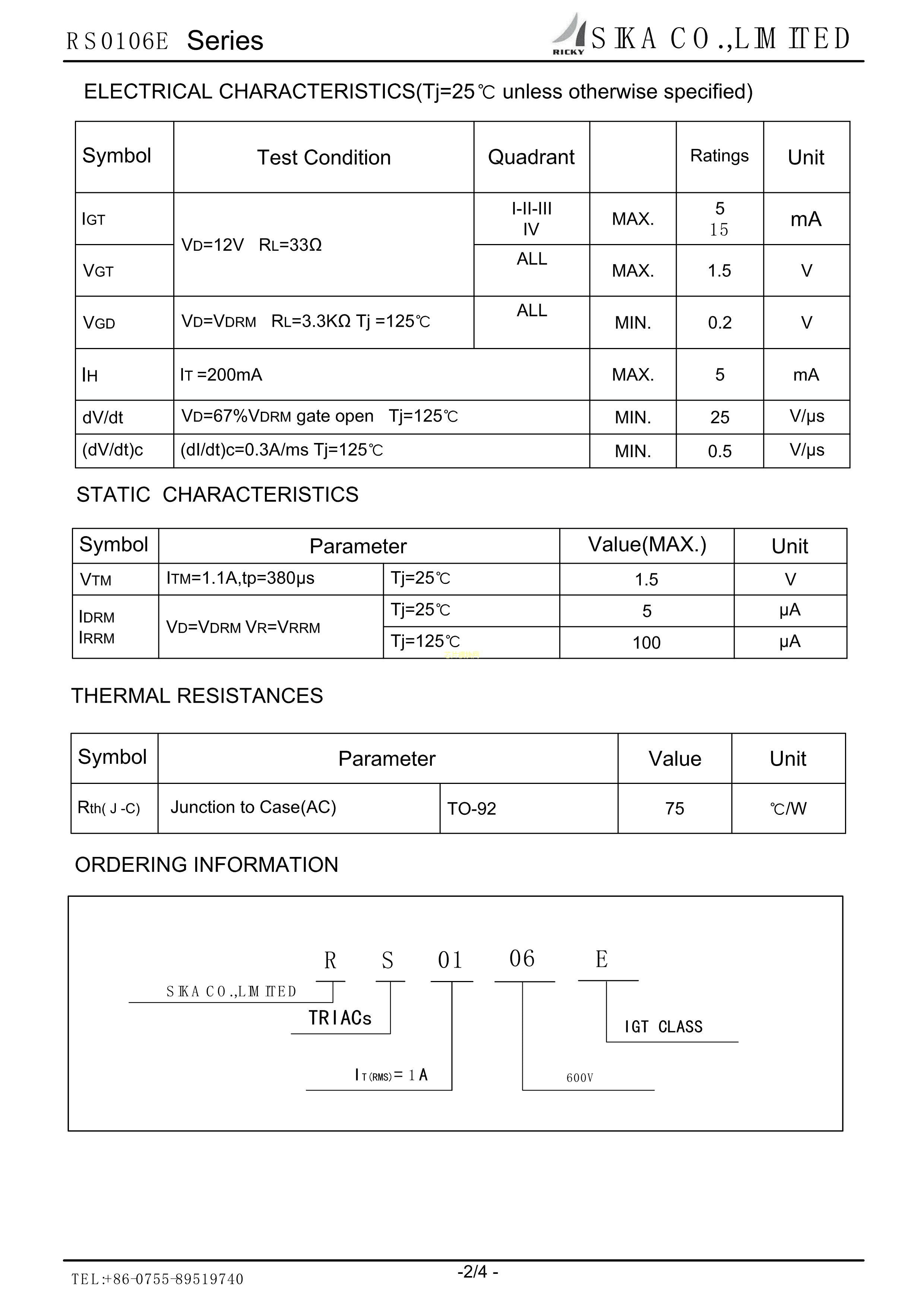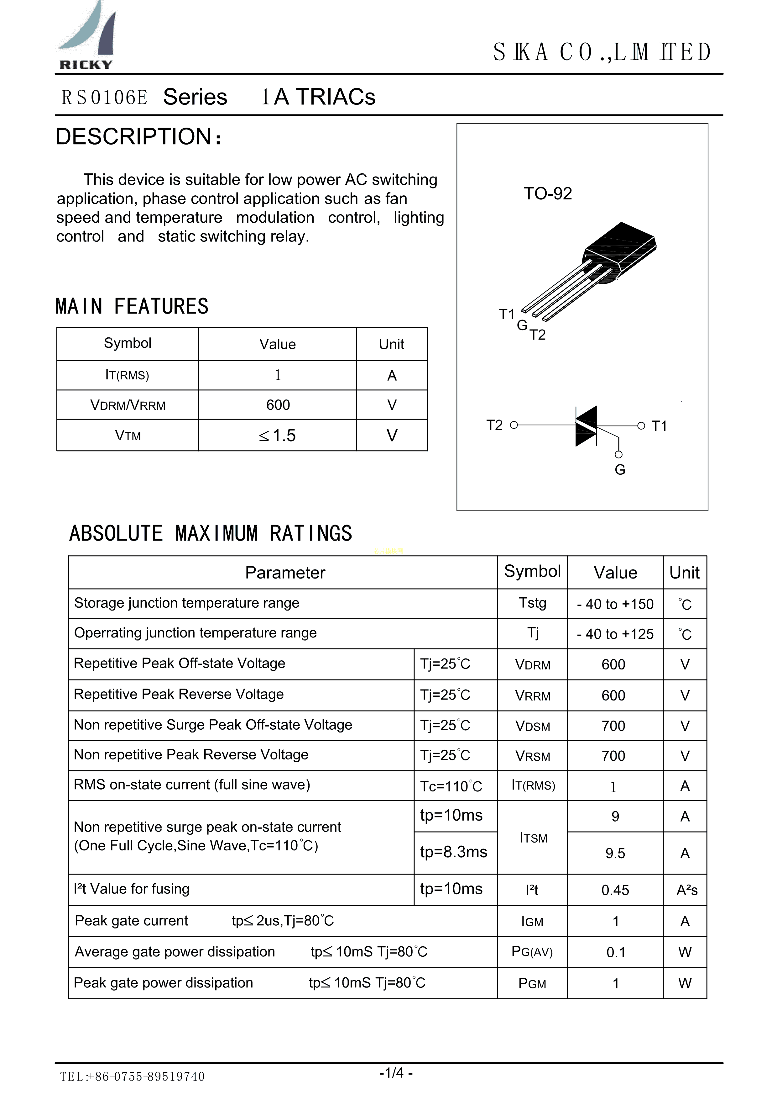 RS0106E数据手册TO-92封装RICKYPDF规格书,中英文下载