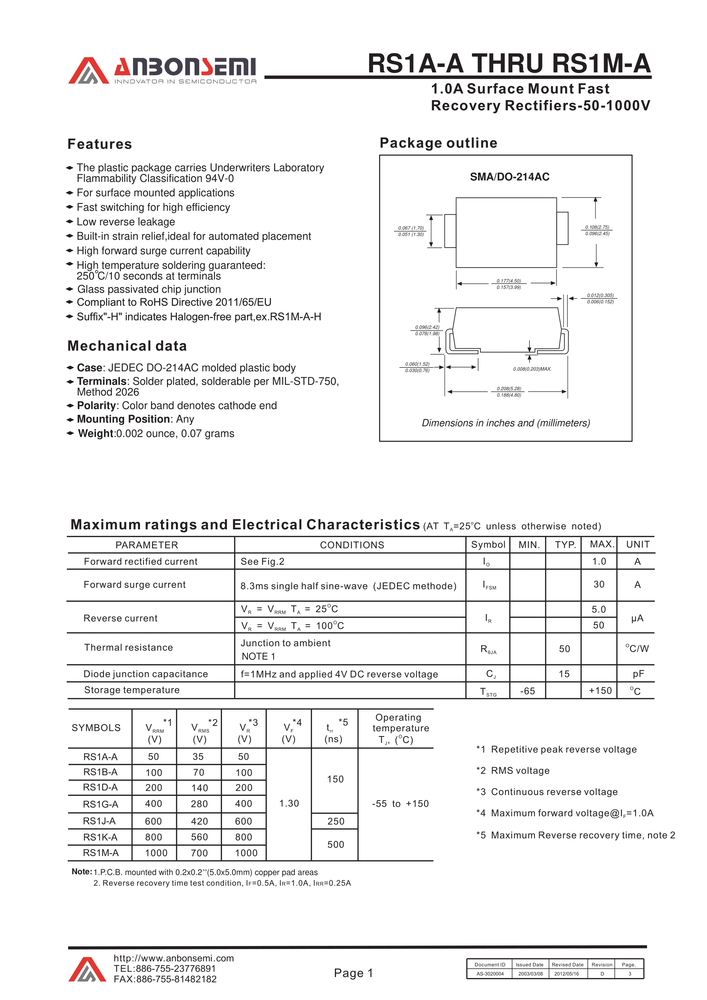 RS1D数据手册SMA封装FMS(台湾美丽微).pdf
