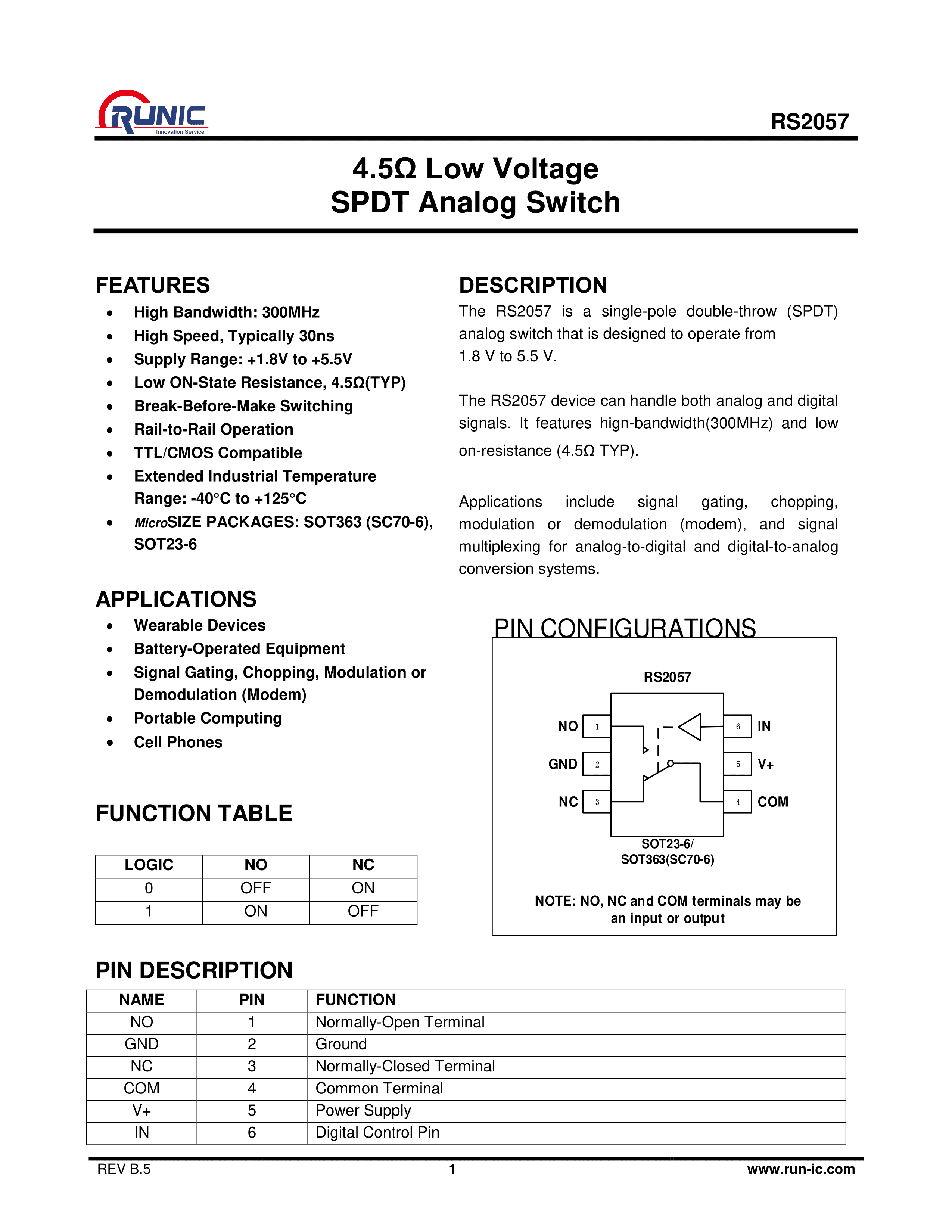 RS2057XC6数据手册SC-70-6封装RUNIC(润石)PDF规格书,中英文下载