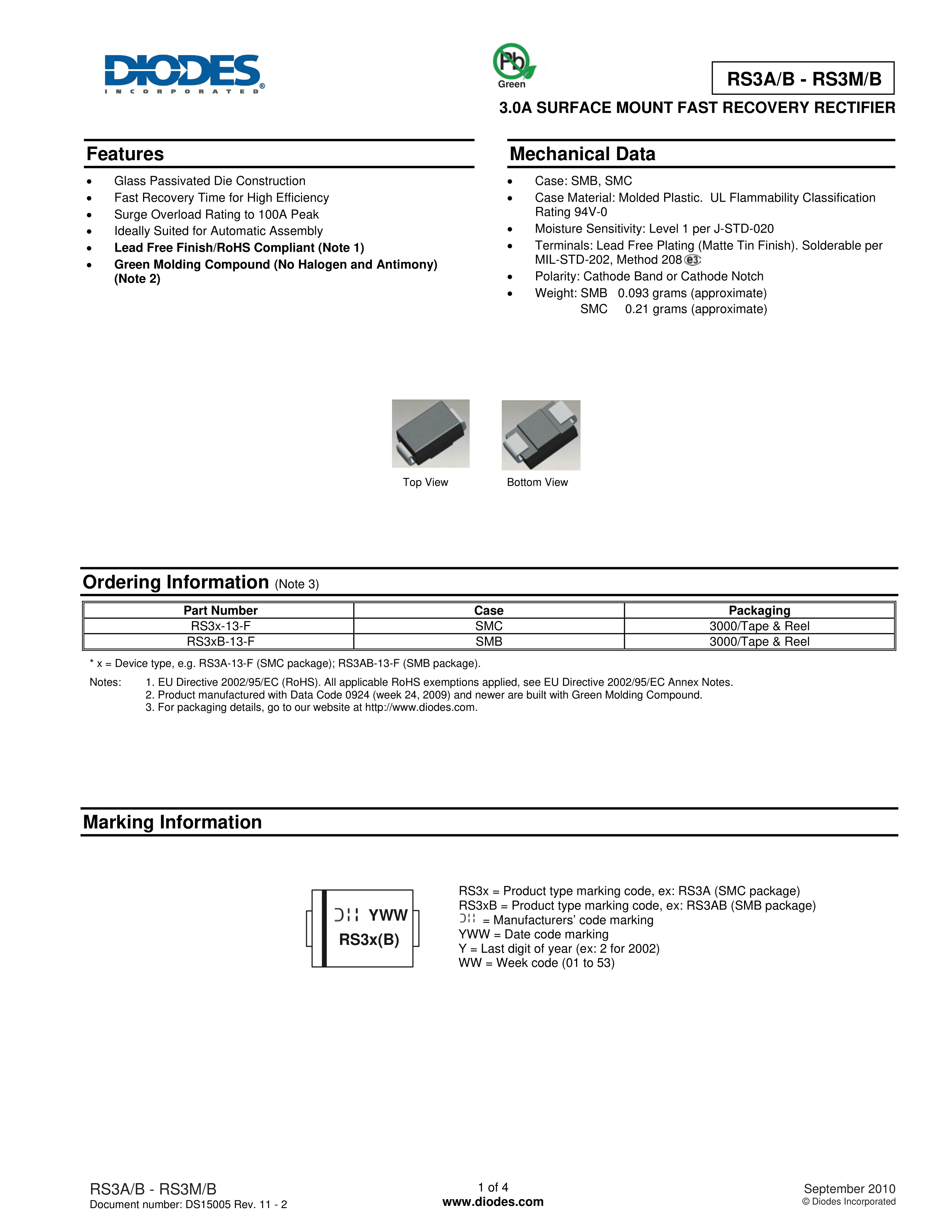RS3GB-13-F数据手册SMB封装DIODES(美台)PDF规格书,中英文下载