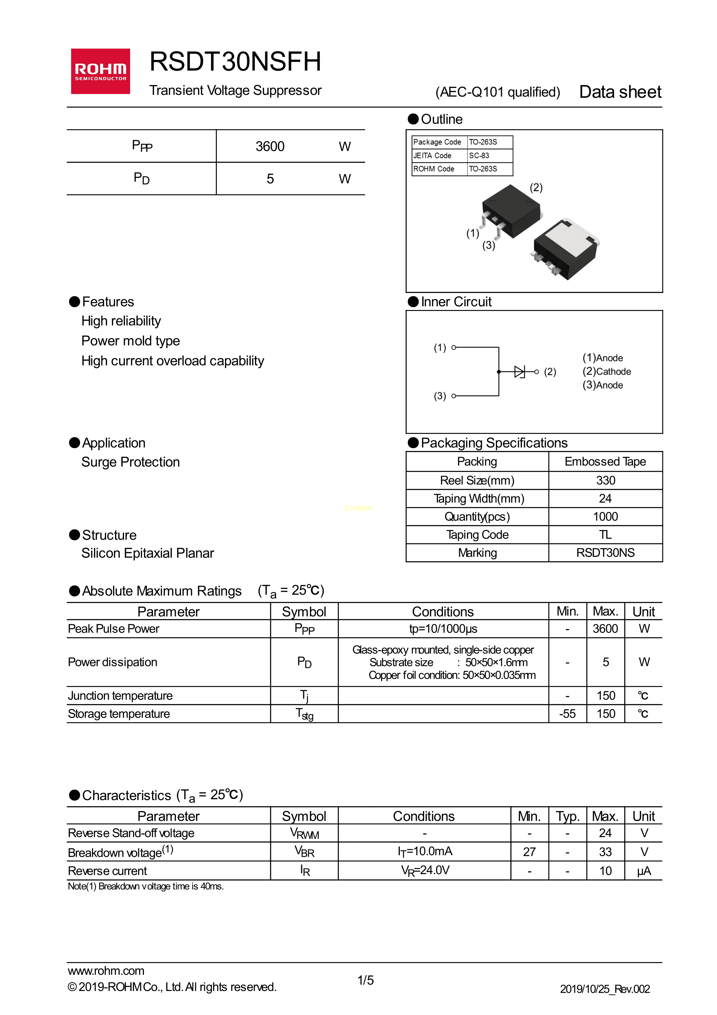 RSDT30NSFHTL数据手册LPDS封装ROHM(罗姆)PDF规格书,中英文下载