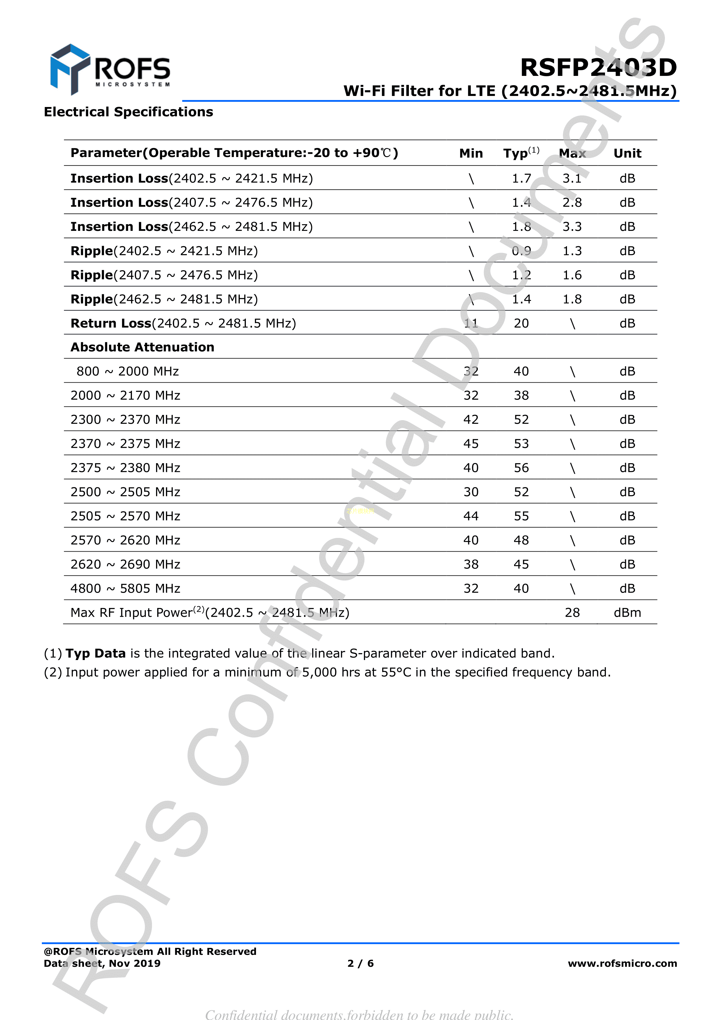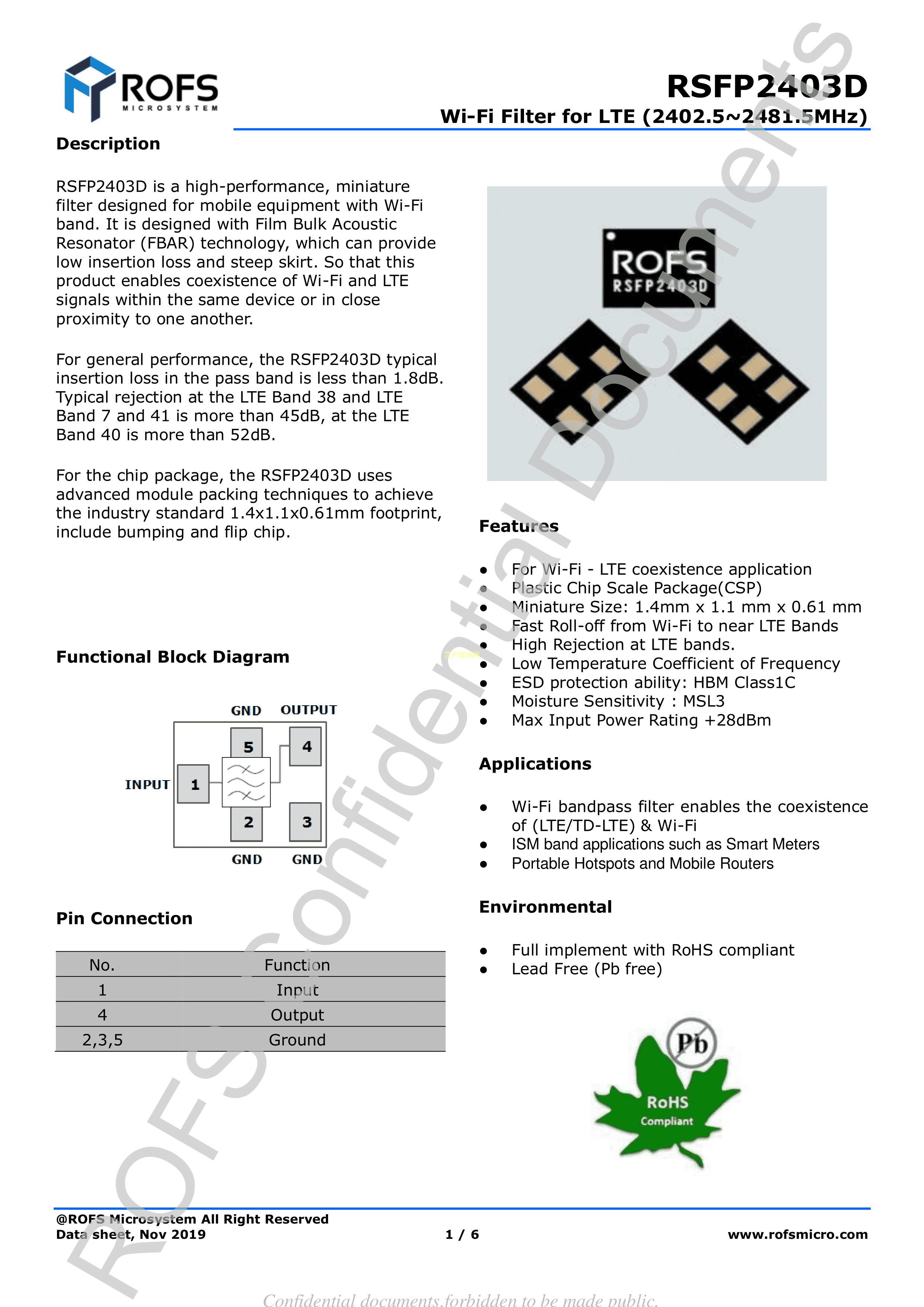RSFP2403D数据手册SMD1.4x1.1x0.61mm封装ROFS(诺思)PDF规格书,中英文
