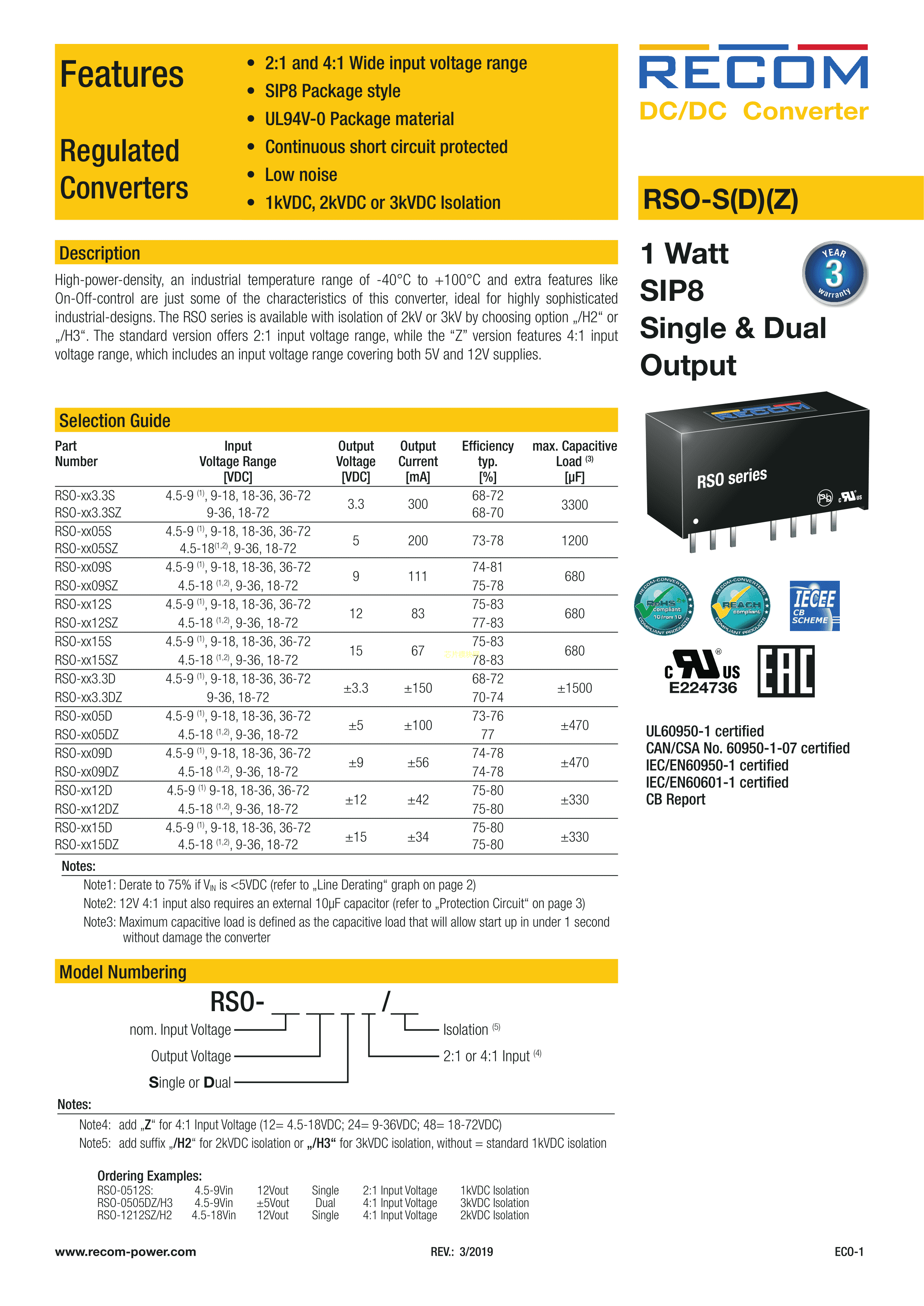 RSO-2405S-H2数据手册插件封装Recom PowerPDF规格书,中英文下载