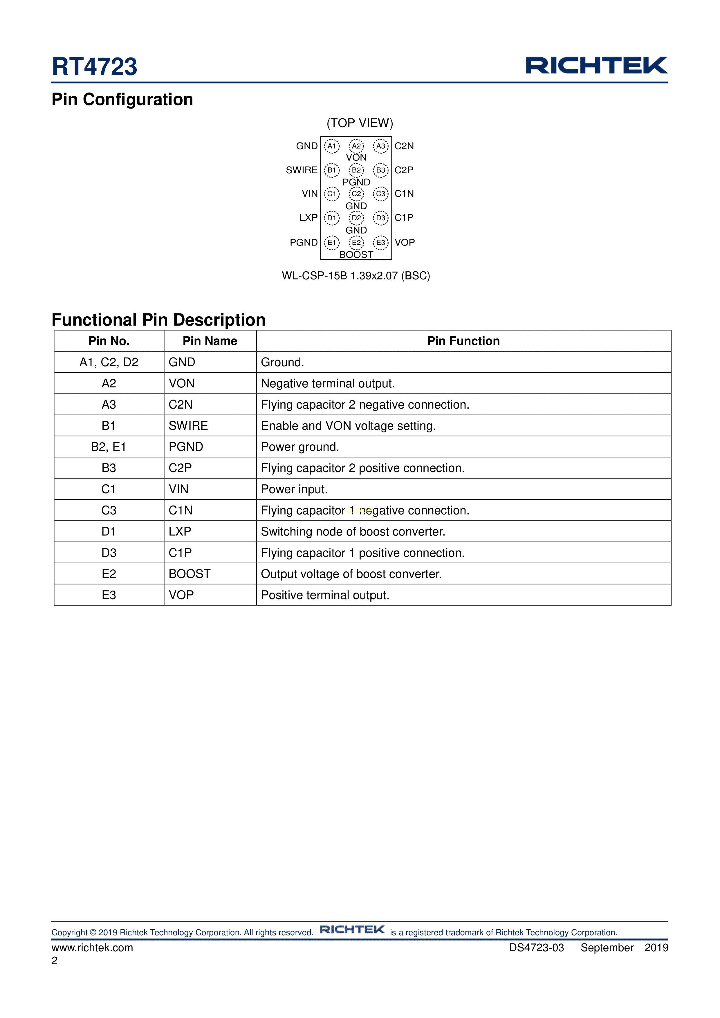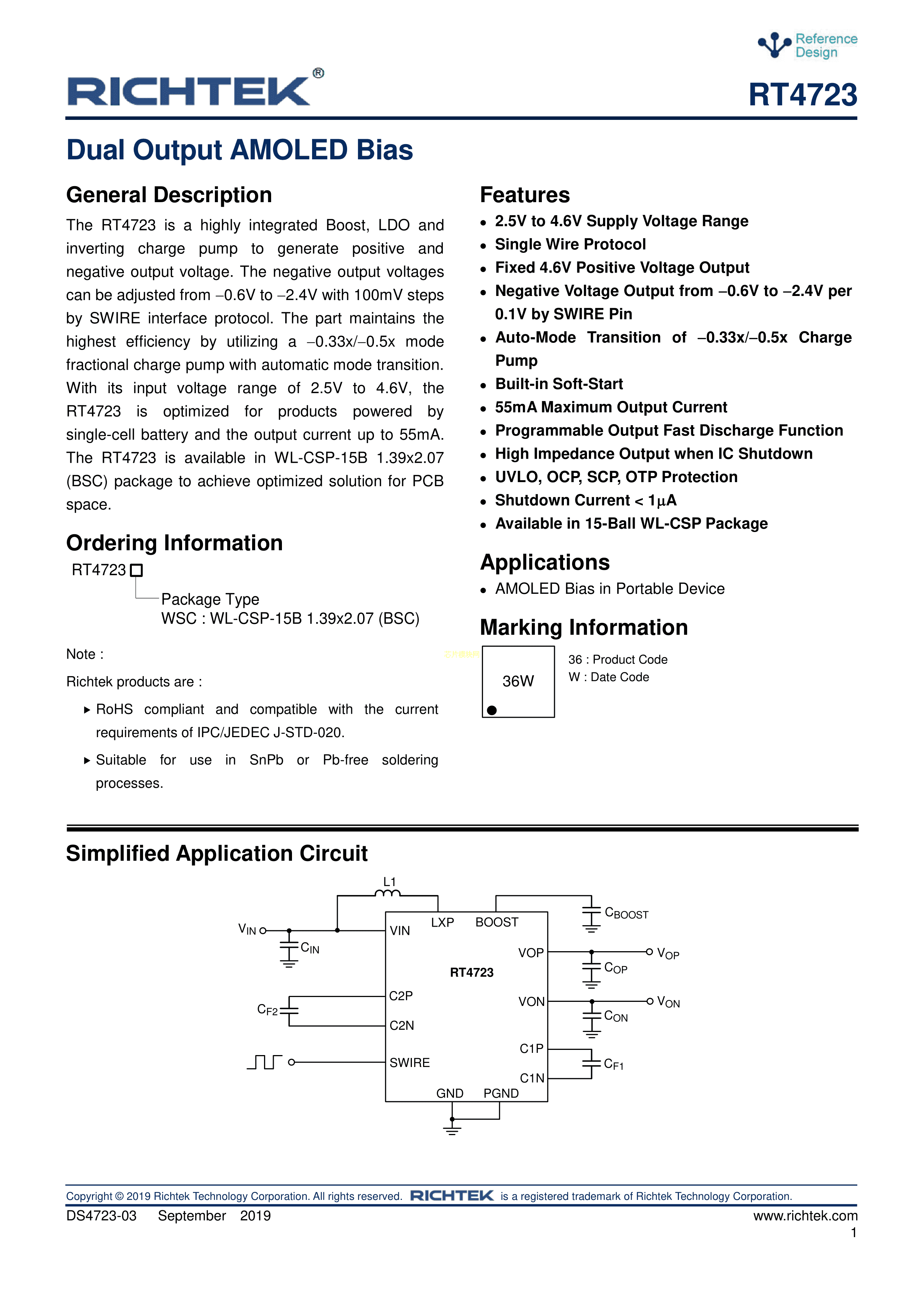 RT4723WSC数据手册WLCSP-15B(1.39x2.07)封装RICHTEK(台湾立锜)PD