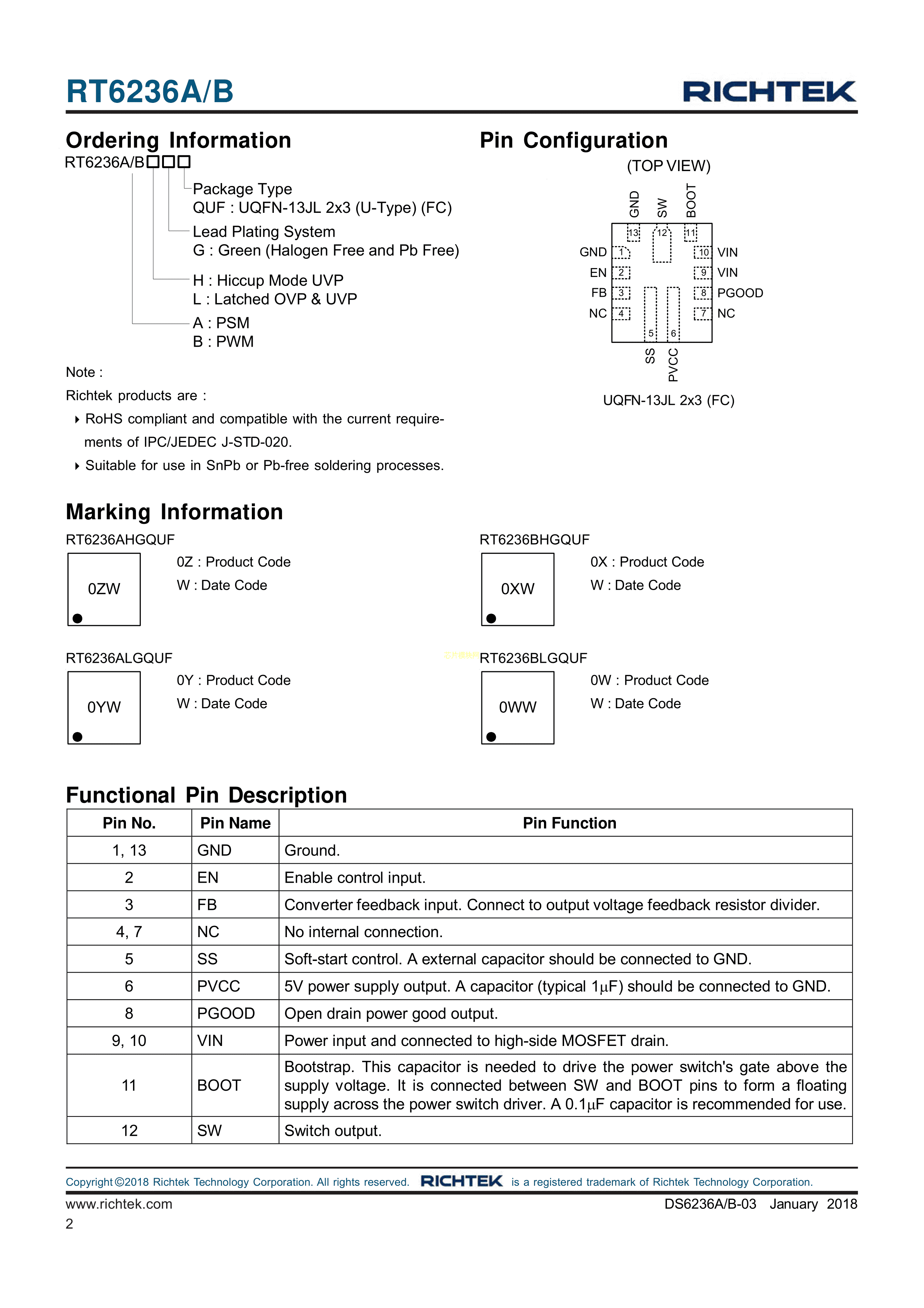 RT6236BHGQUF数据手册QFN封装RICHTEK(台湾立锜)PDF规格书,中英文下载
