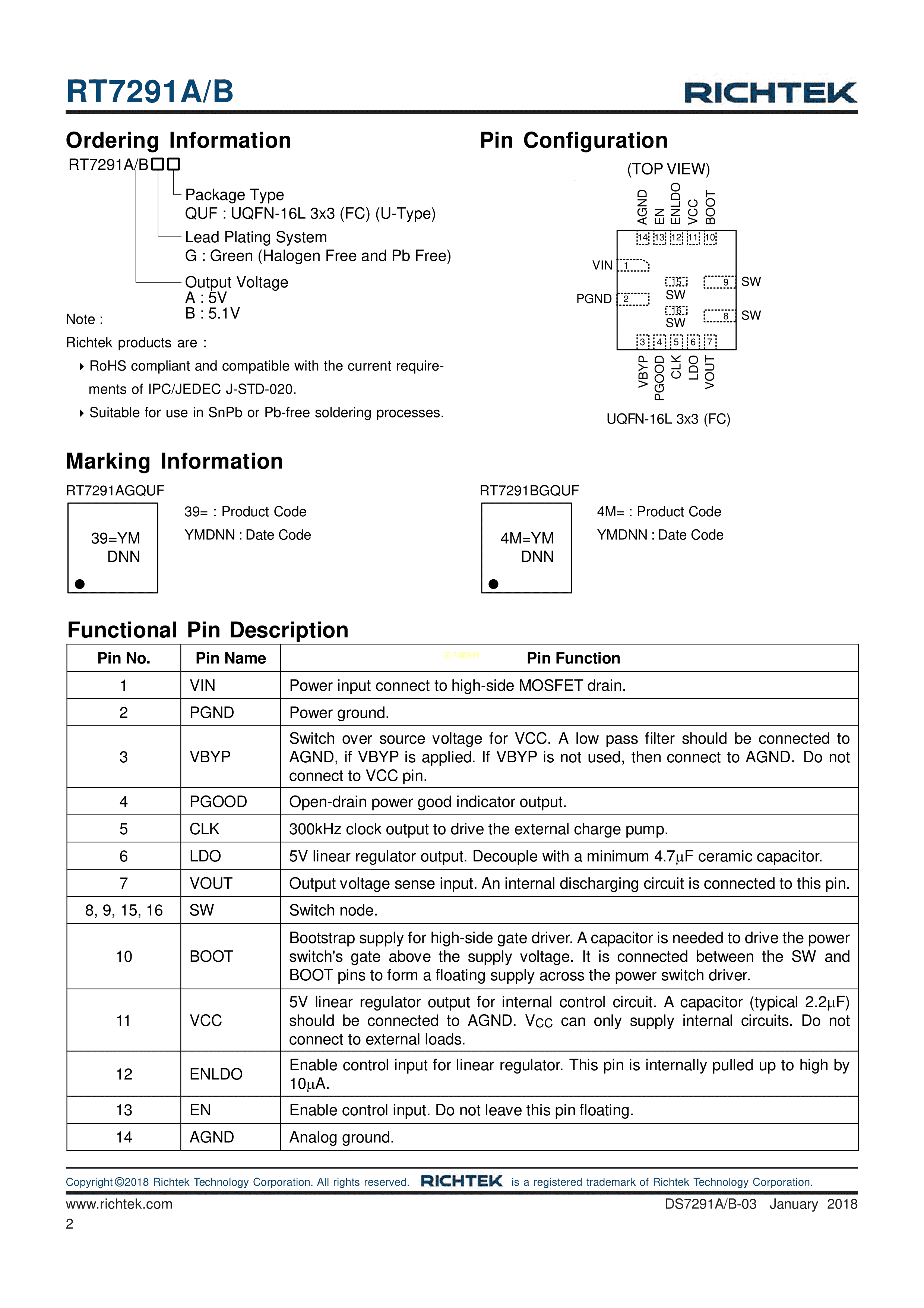 RT7291AGQUF数据手册UQFN-16封装RICHTEK(台湾立锜)PDF规格书,中英文下载