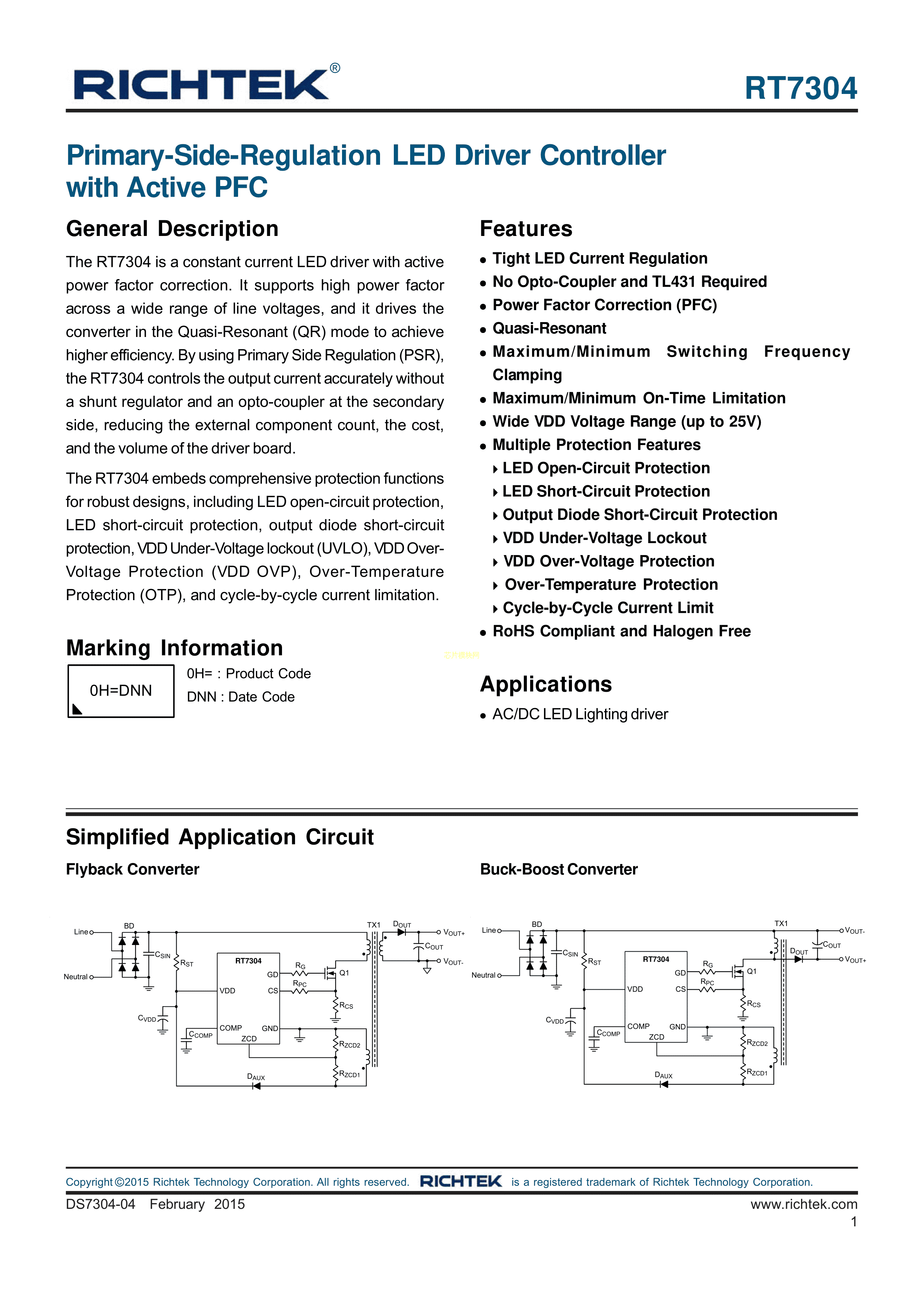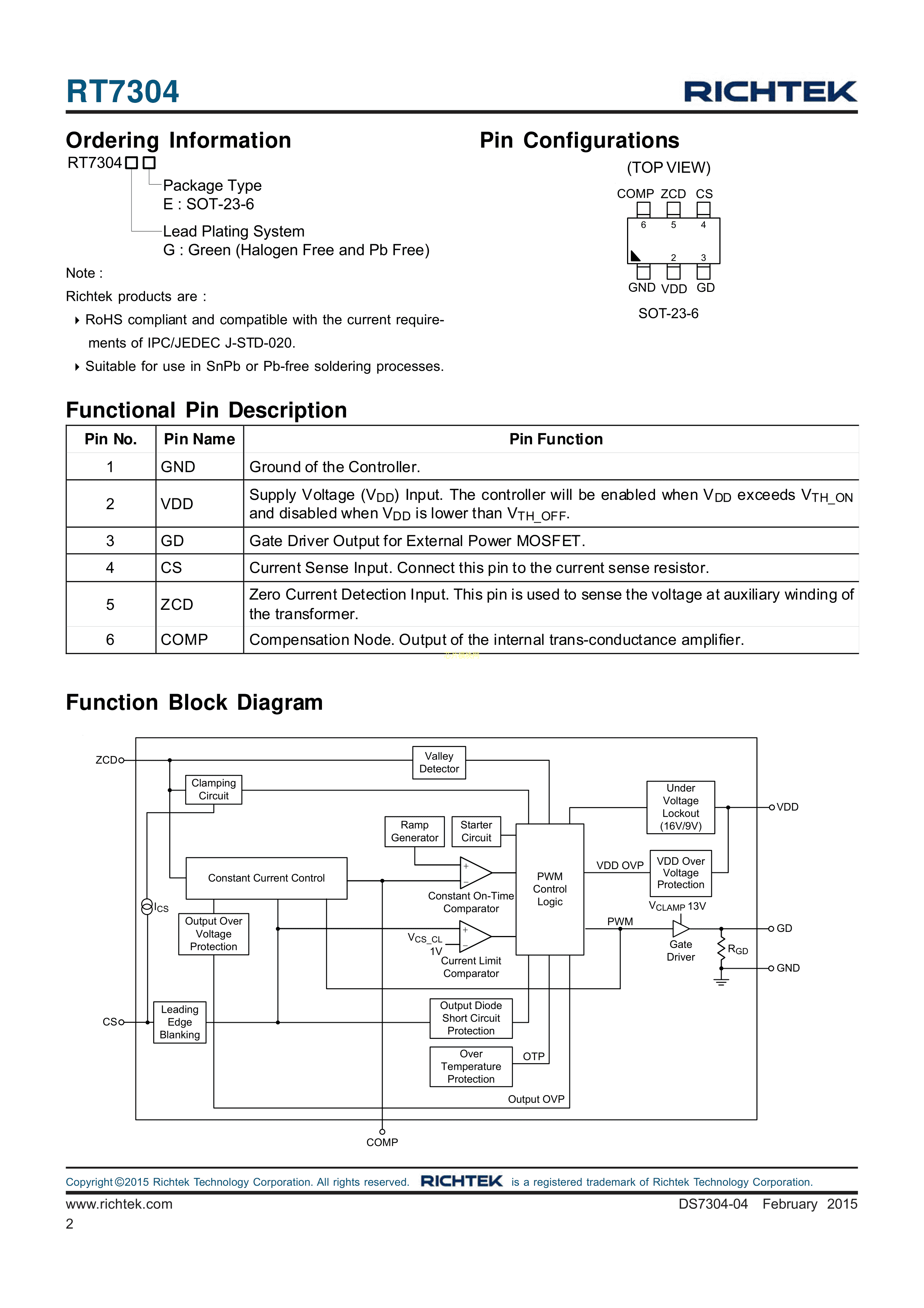 RT7304GE数据手册SOT-23-6封装RICHTEK(台湾立锜)PDF规格书,中英文下载
