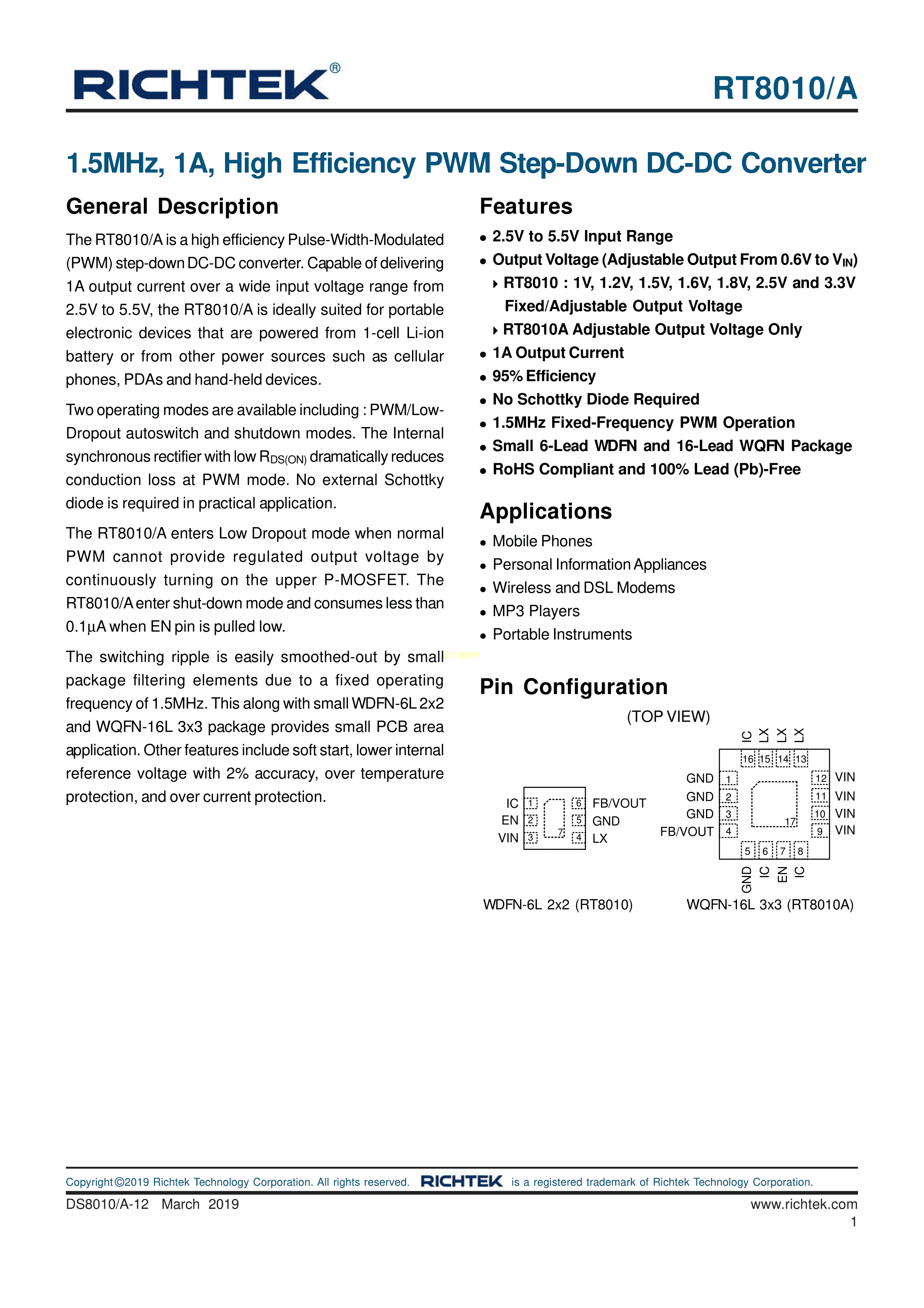 RT8010AGQW数据手册WQFN-163x3封装RICHTEK(台湾立锜)PDF规格书,中英文下载
