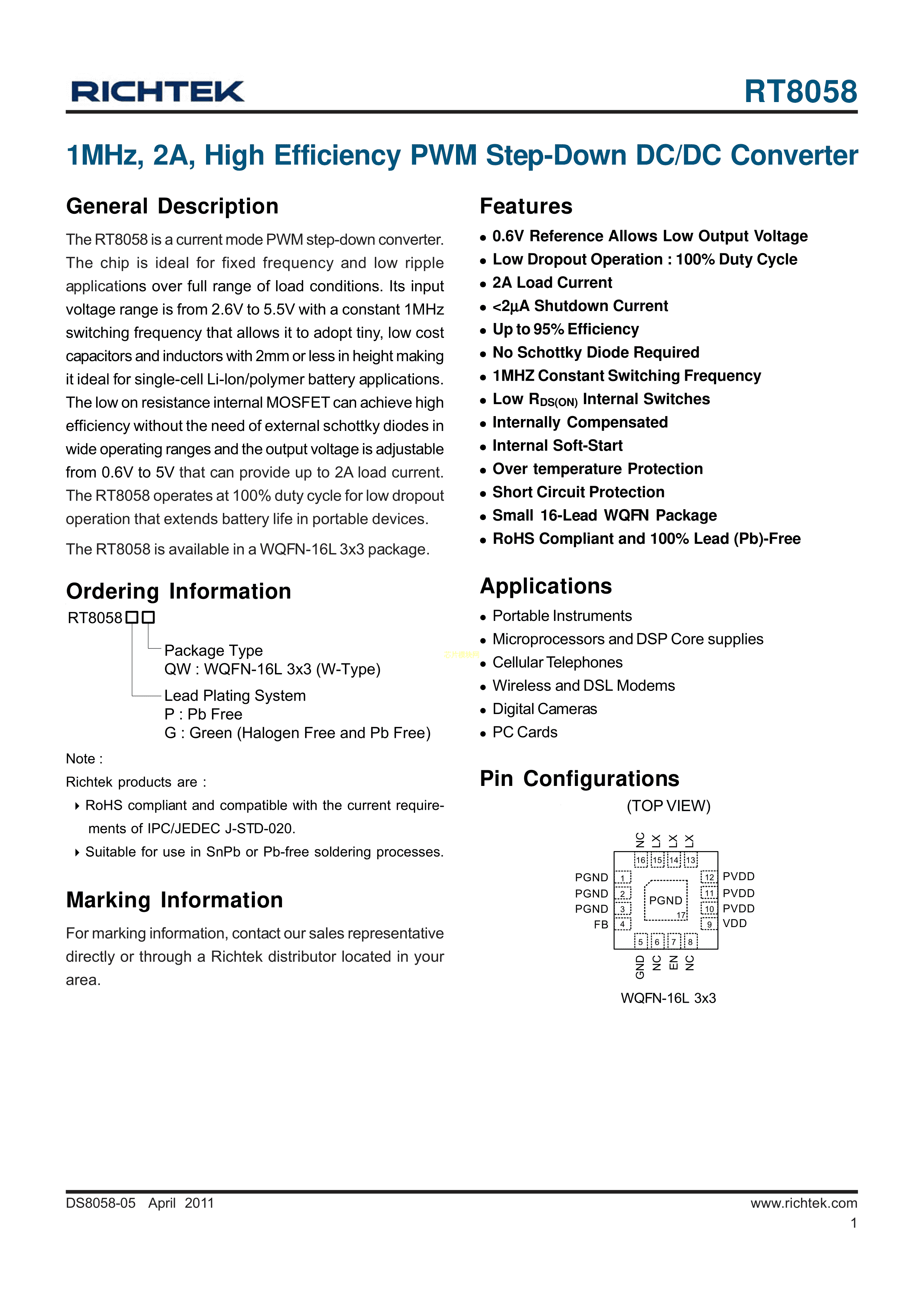 RT8058GQWPDF规格书,中英文下载
