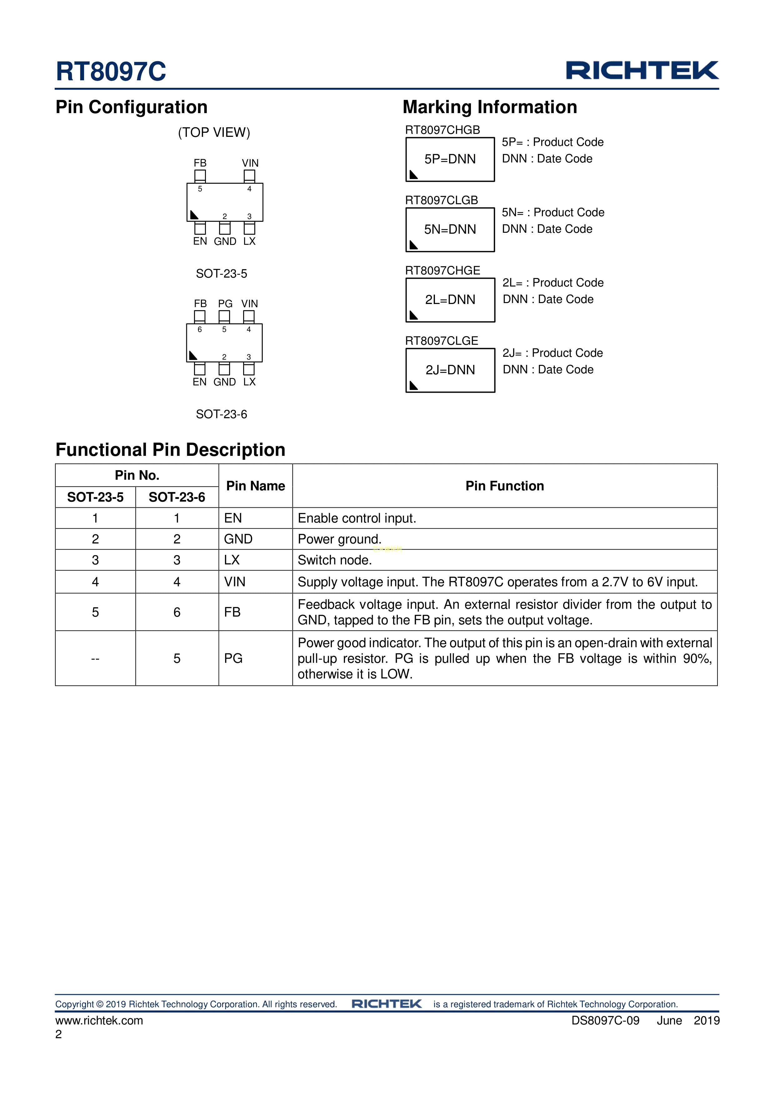RT8097CHGB数据手册SOT-23-5封装RICHTEK(台湾立锜)PDF规格书,中英文下载