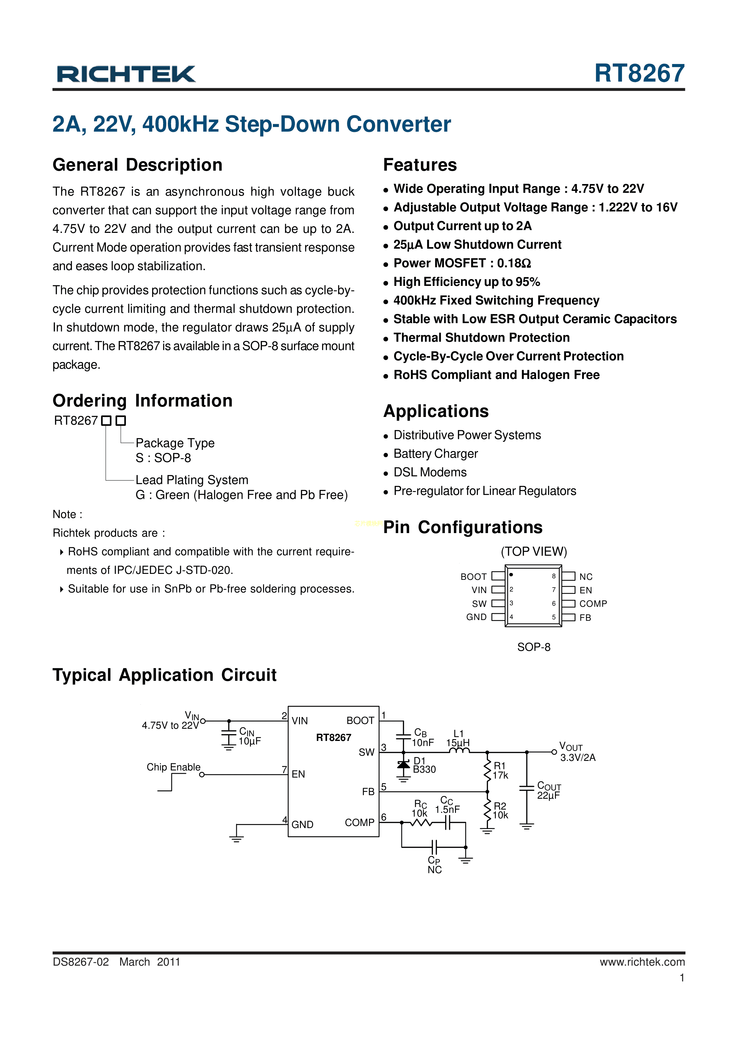 RT8267GS数据手册SOP-8封装RICHTEK(台湾立锜)PDF规格书,中英文下载