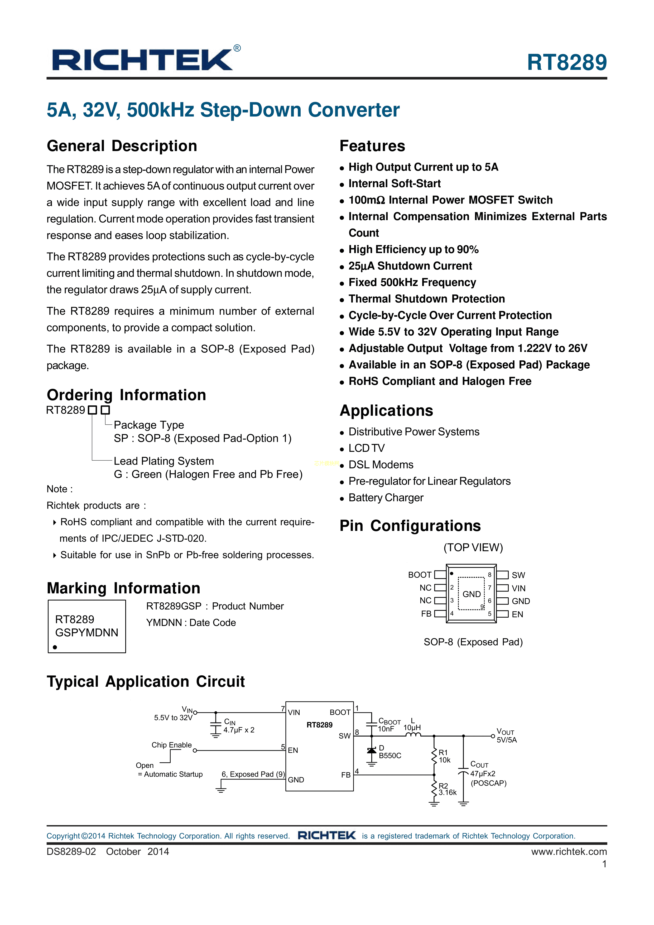 RT8289GSP数据手册SOIC-8_EP_150mil封装RICHTEK(台湾立锜)PDF规格书