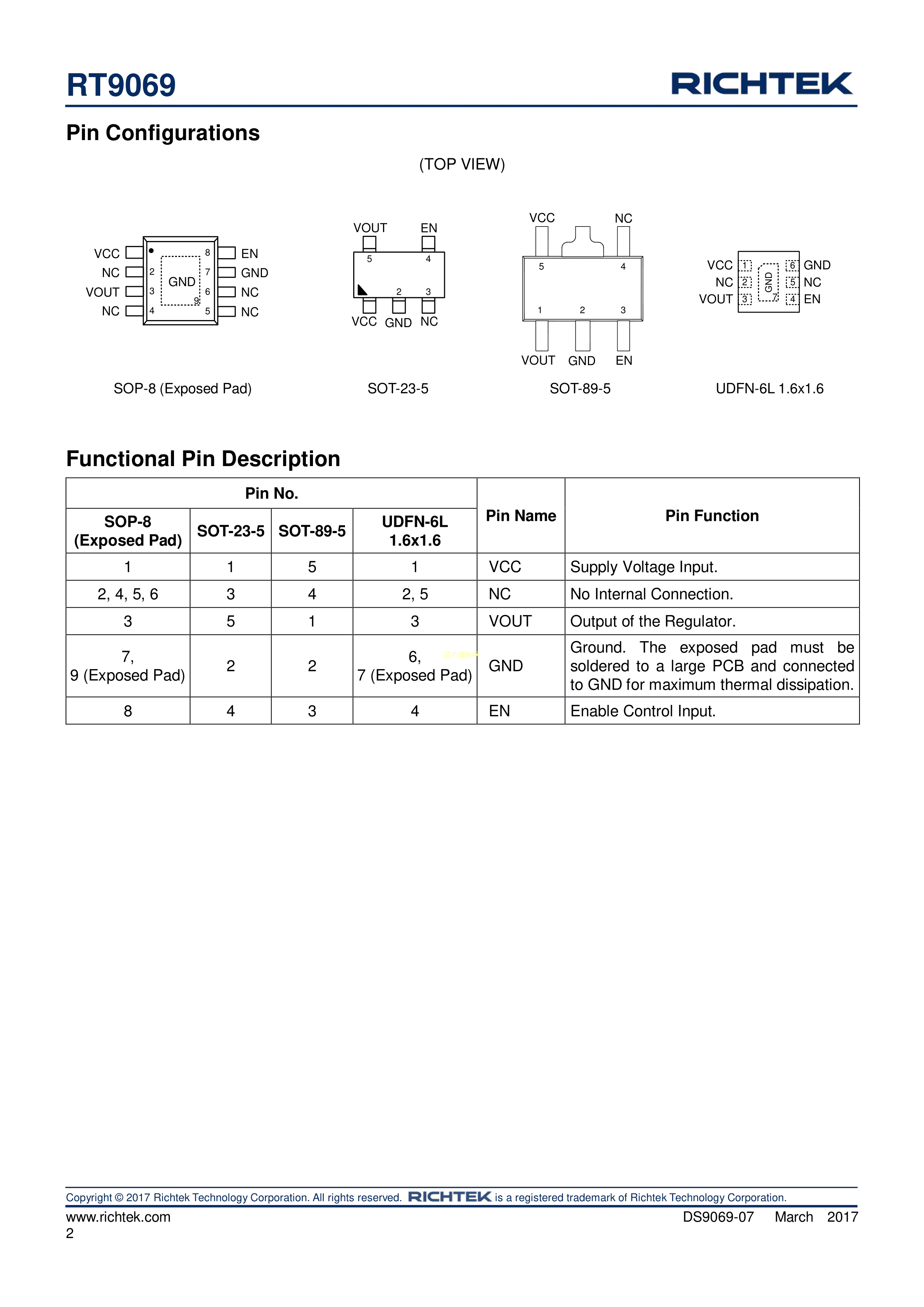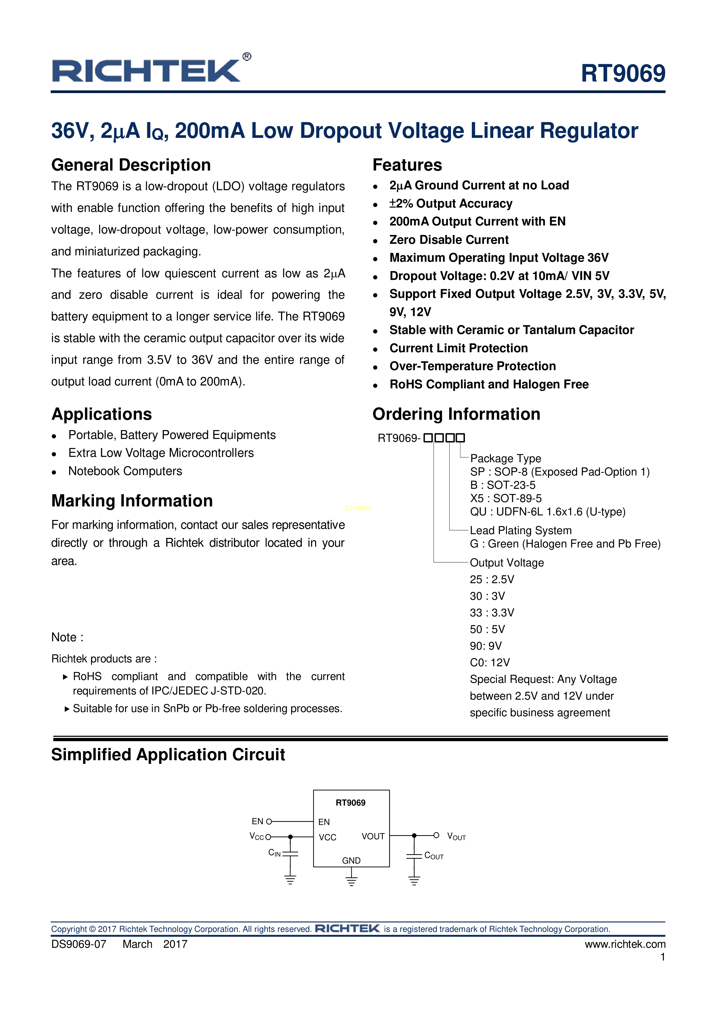 RT9069-33GQU数据手册UDFN-61.6x1.6封装RICHTEK(台湾立锜)PDF规格书
