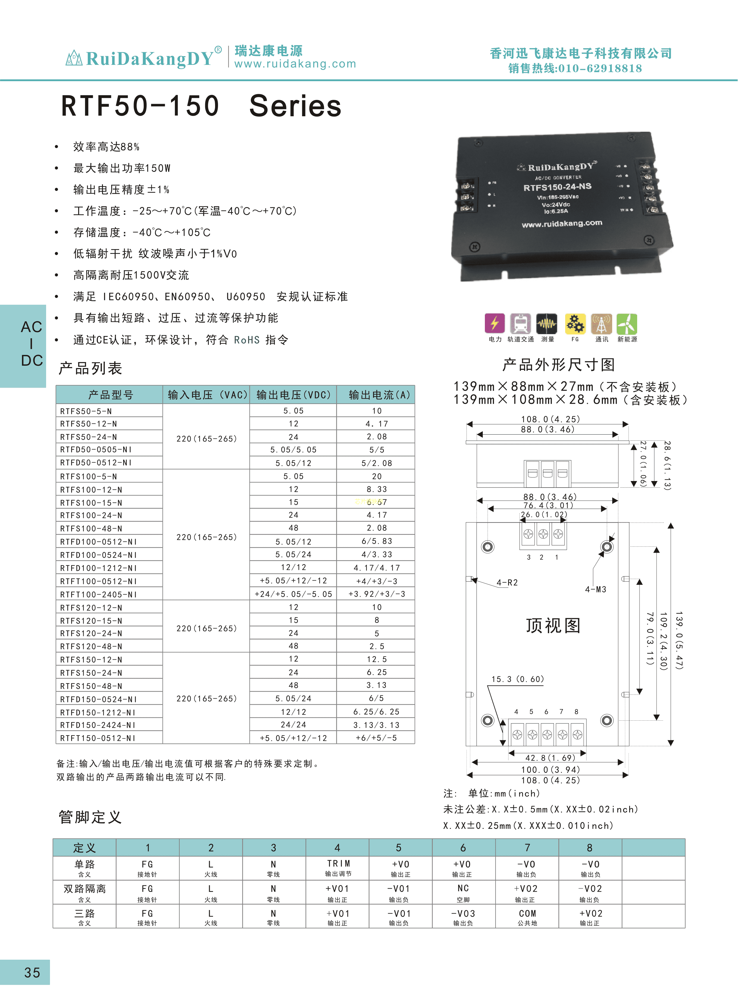 RTFS150-12-N数据手册-封装ruidakangDY(瑞达康)PDF规格书,中英文下载