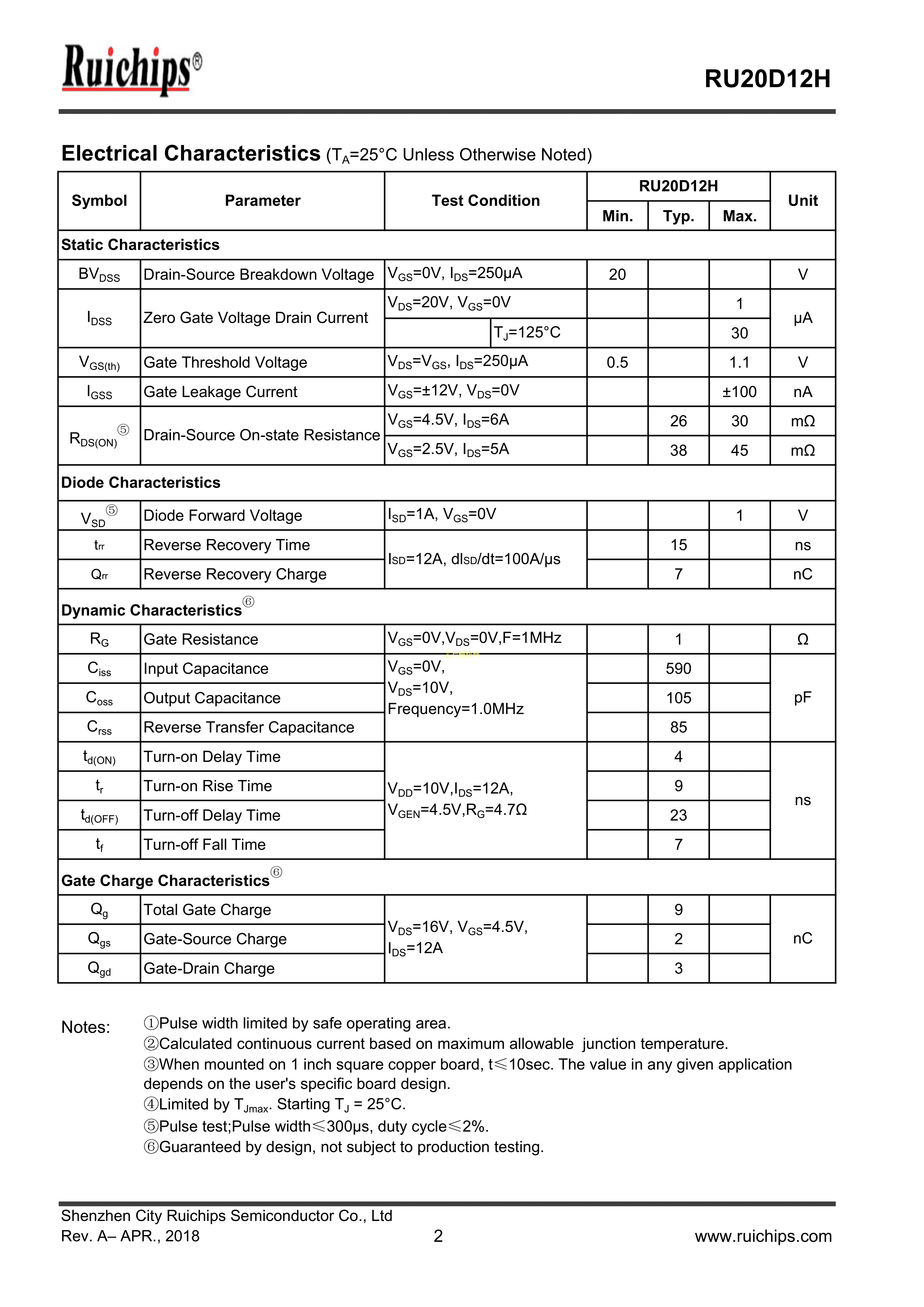RU20D12H数据手册SOP-8封装Ruichips(锐骏半导体)PDF规格书,中英文下载