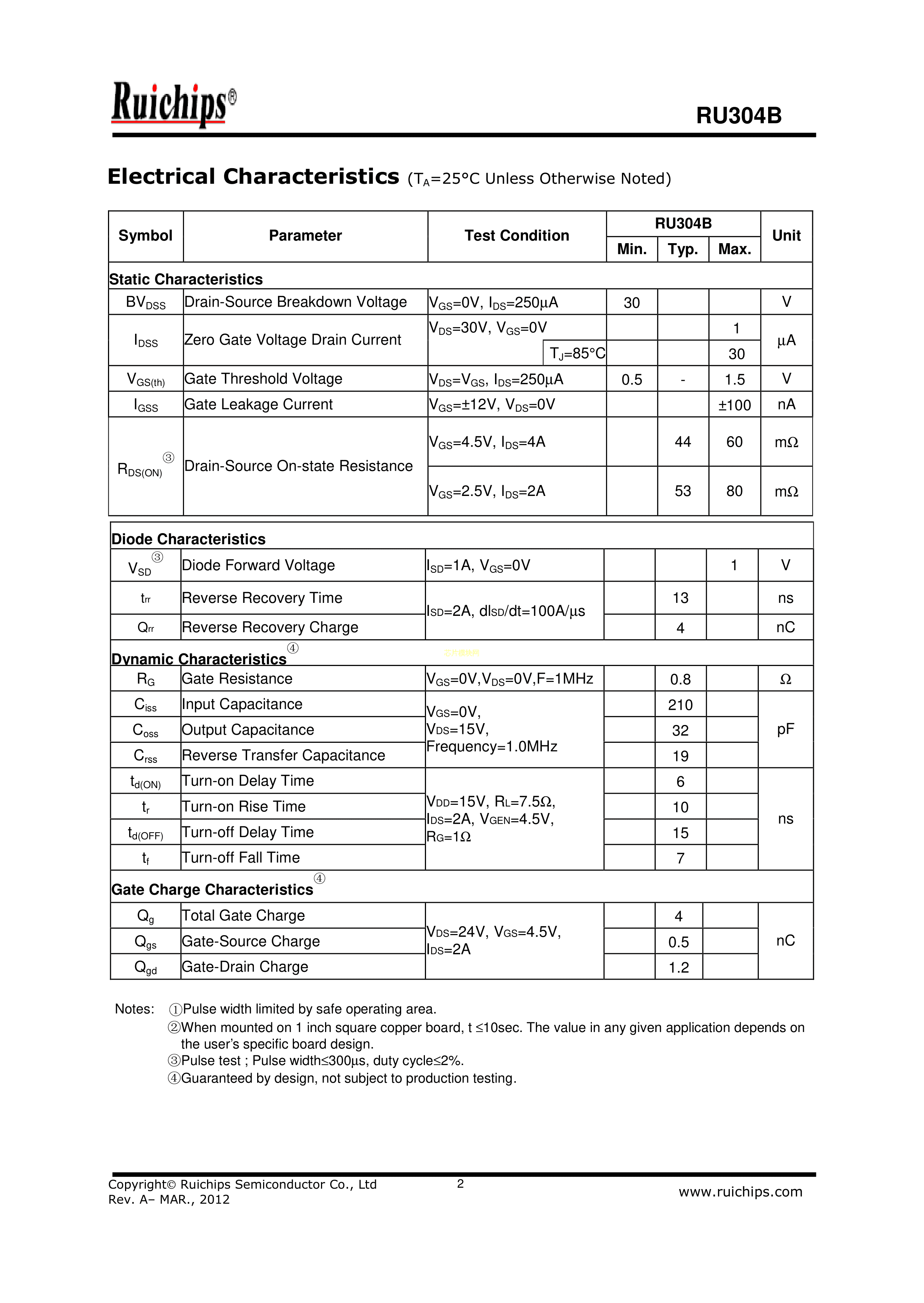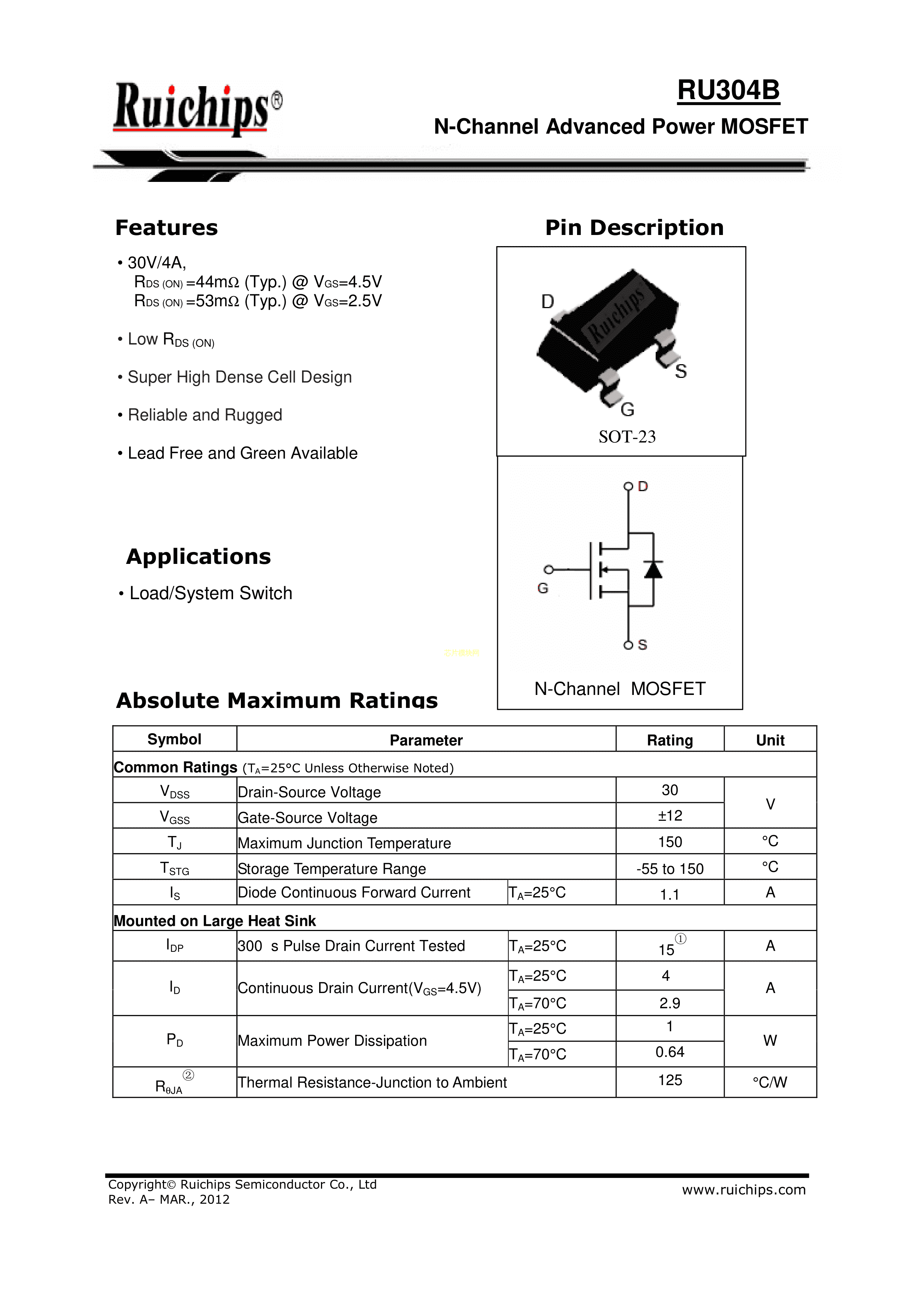 RU304B数据手册SOT-23(SOT-23-3)封装Ruichips(锐骏半导体)PDF规格书,中英文下载