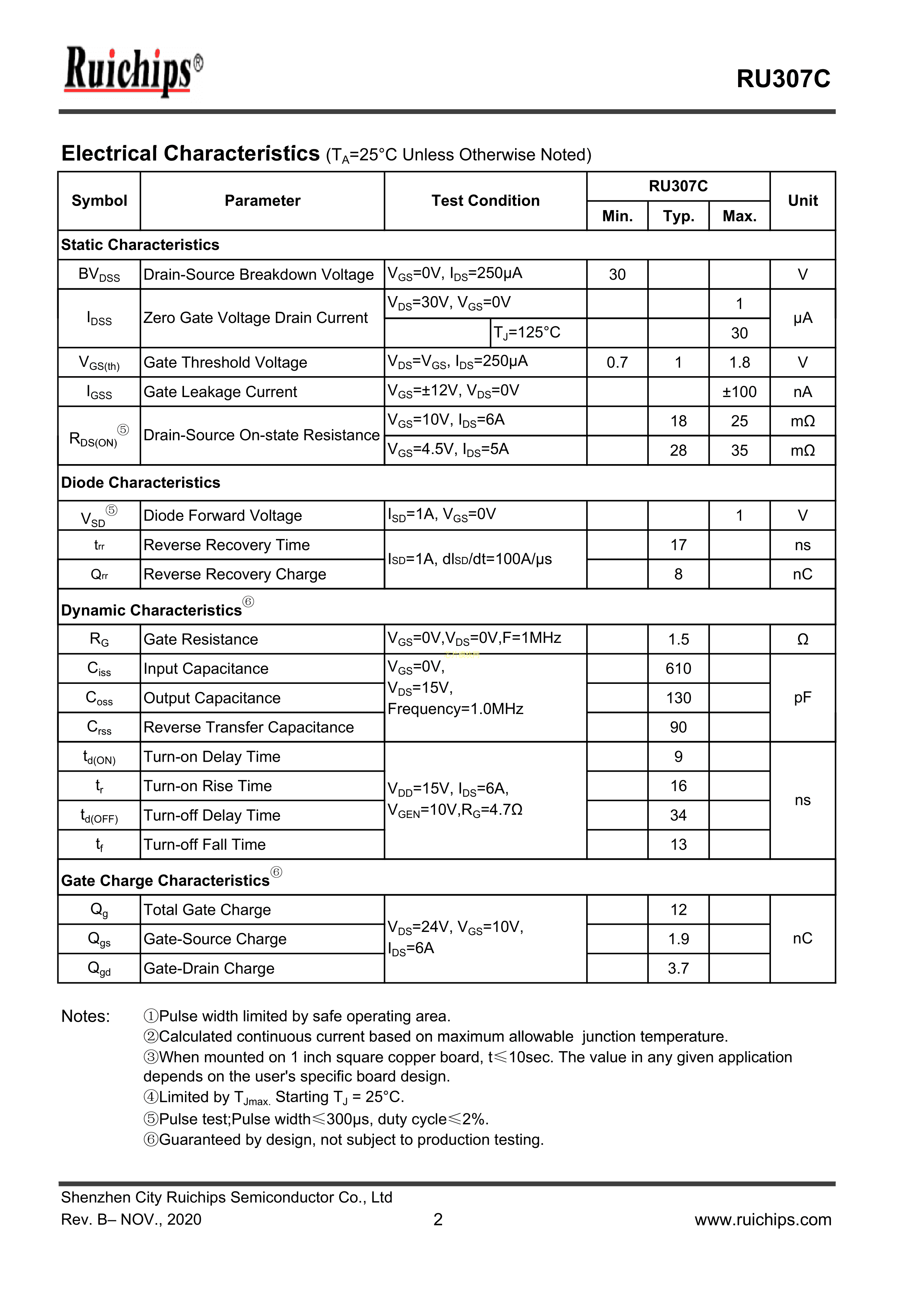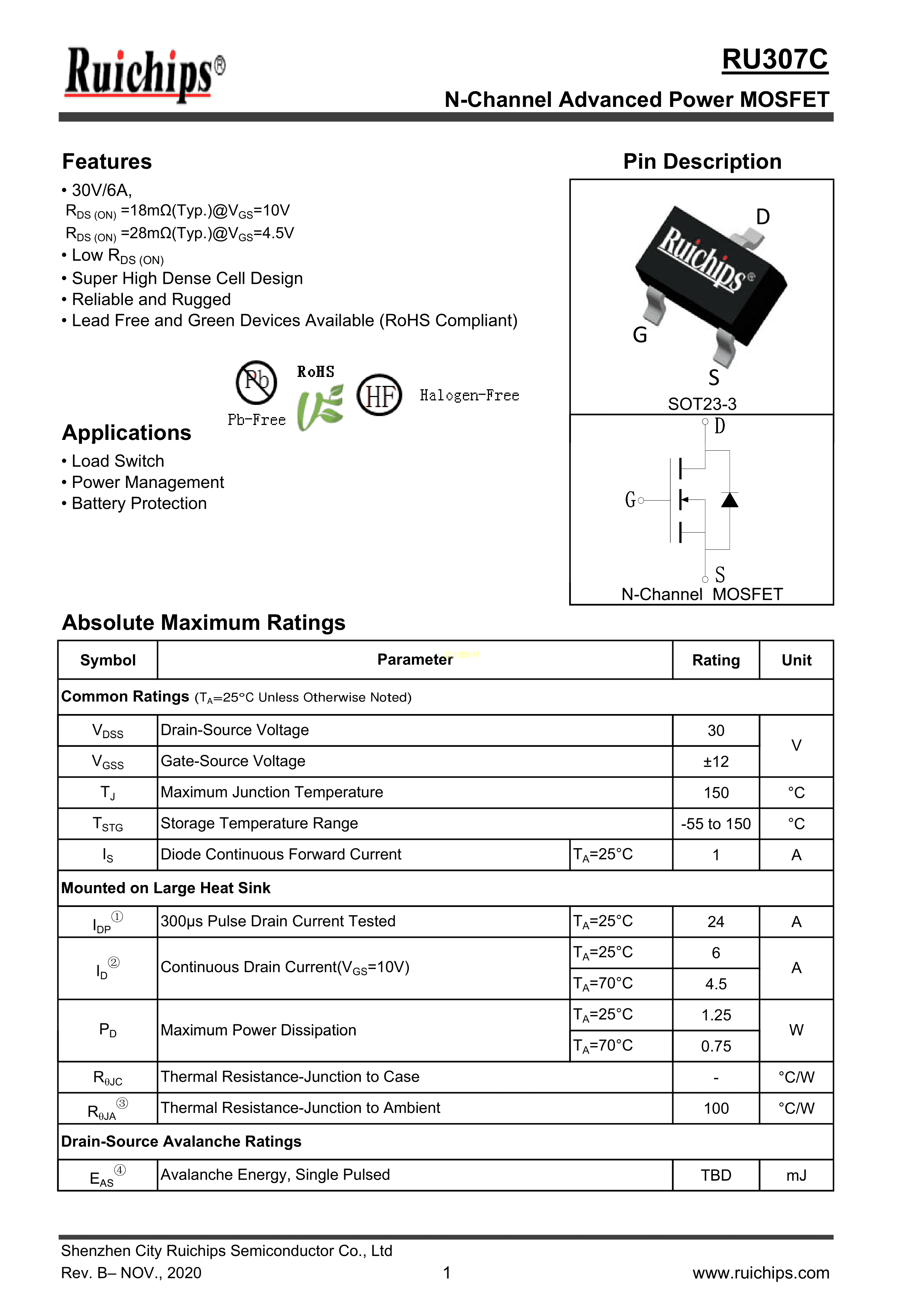 RU307C数据手册SOT-23-3封装Ruichips(锐骏半导体)PDF规格书,中英文下载
